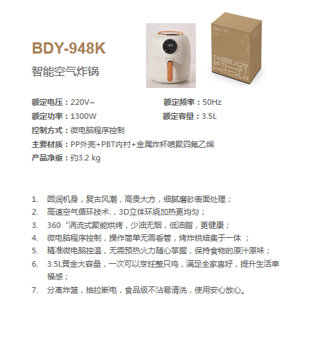 博堡 BDY-948K 智能空气炸锅