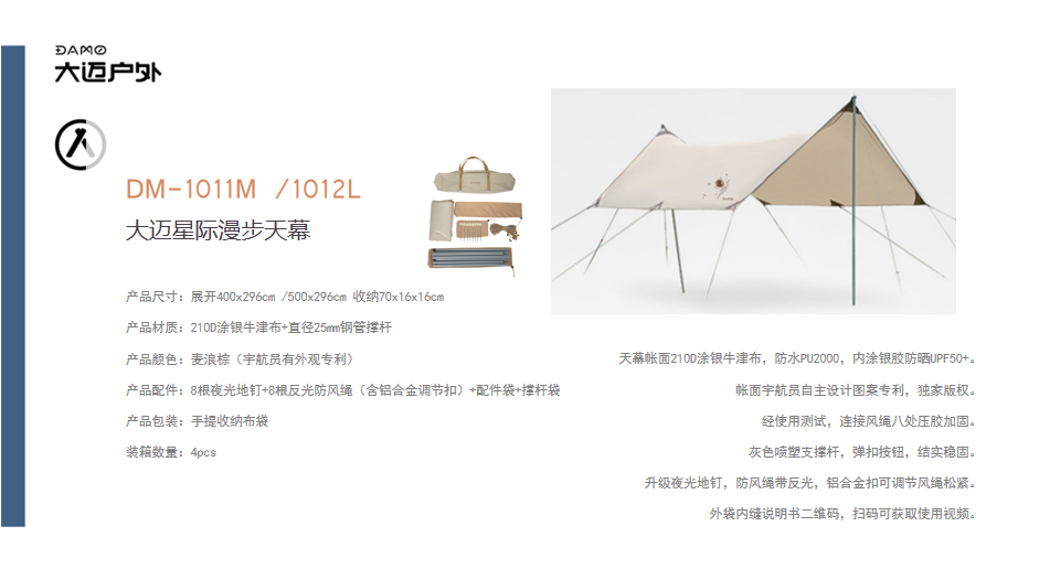 大迈 DM-1011M 大迈星际漫步天幕 展开400x296cm