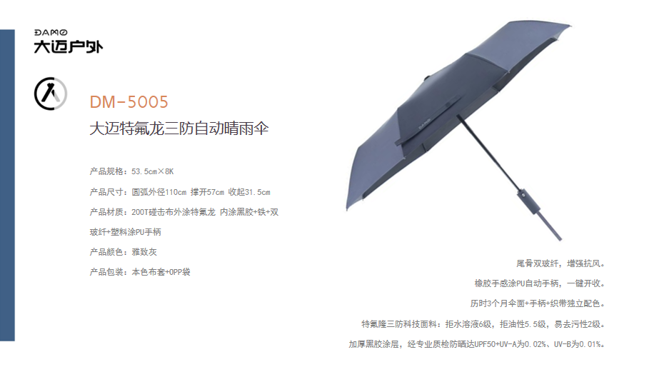 大迈 DM-5005 大迈特氟龙三防自动晴雨伞