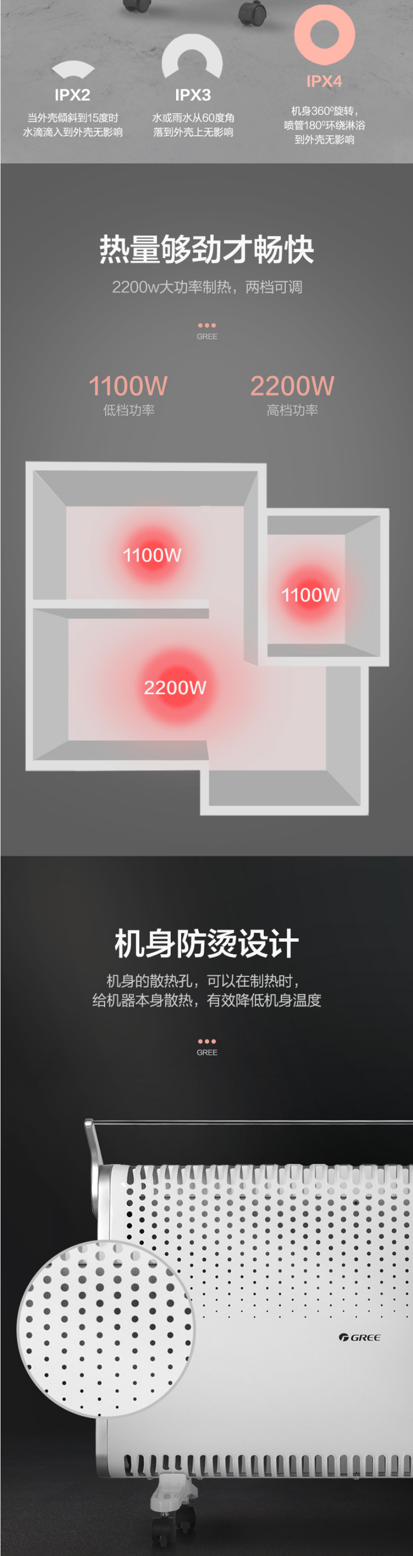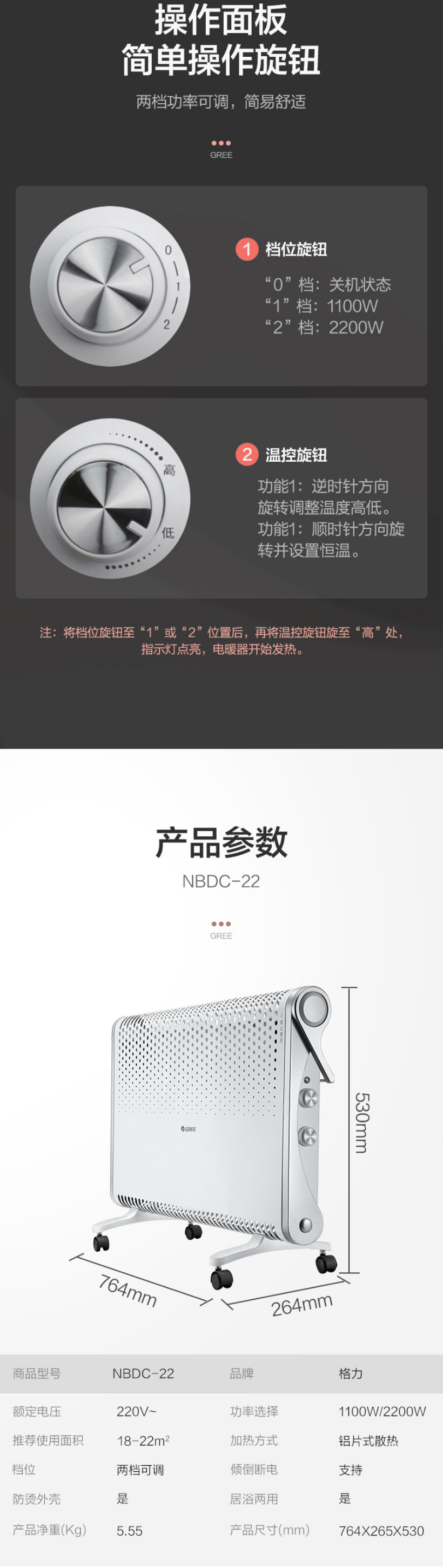 格力 取暖器/电暖器/电暖气家用 居浴两用 浴室防水 电热炉 欧式快热炉 NBDC-22
