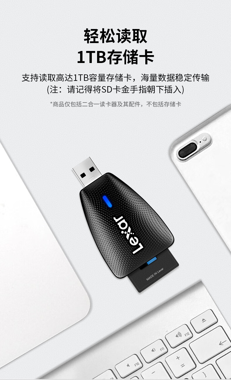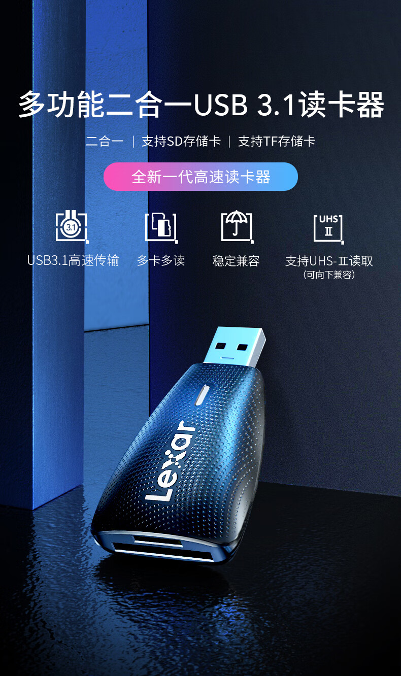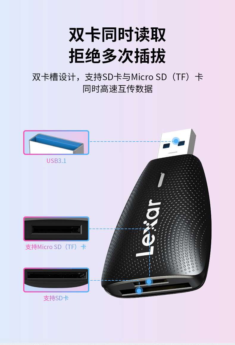 雷克沙(Lexar)USB3.1读卡器 LRW450URBCN 多合一 TF/SD 二合一 监控记录仪TF卡相机SD卡多功能读卡器 多卡多读 稳定兼容