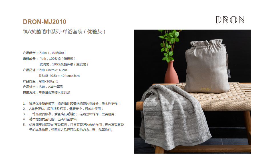 戴洛伦 DRON-MJ2010 臻A抗菌毛巾系列-单浴套装(优雅灰)