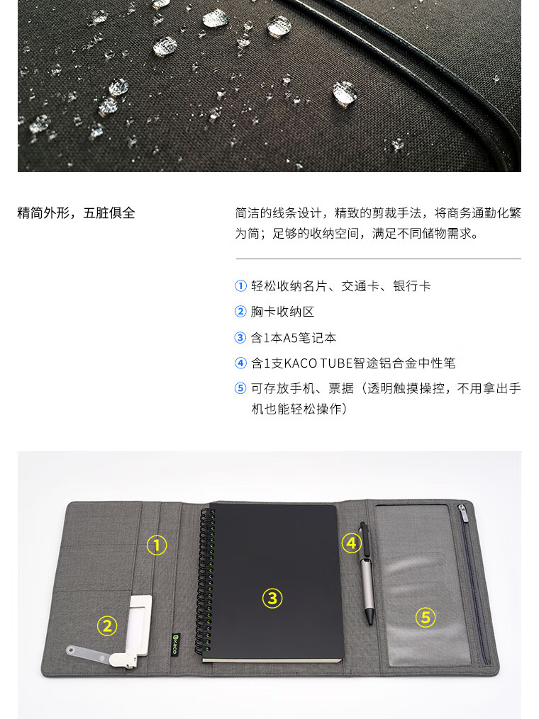 KACO爱乐商务会议笔记本套装礼品 防水防污办公会议多功能高端记事本子 灰色