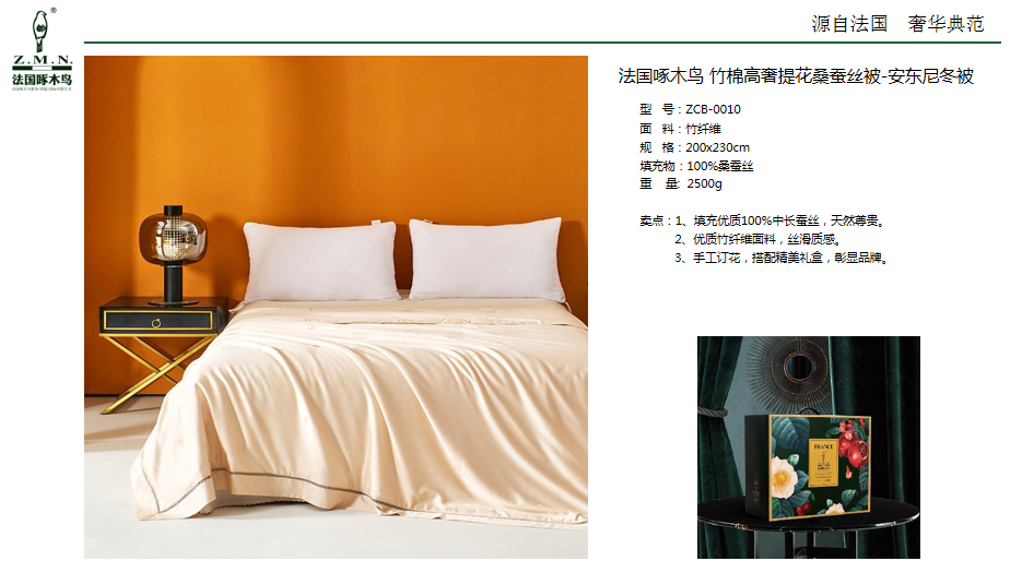 法国啄木鸟 竹棉高奢提花桑蚕丝被-安东尼冬被 ZCB-0010
