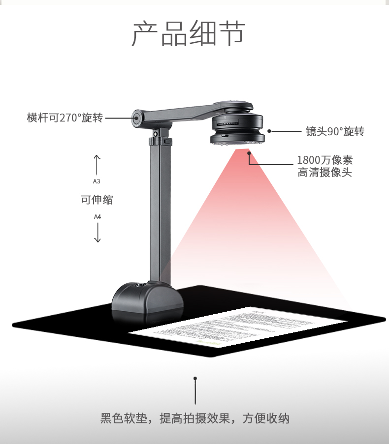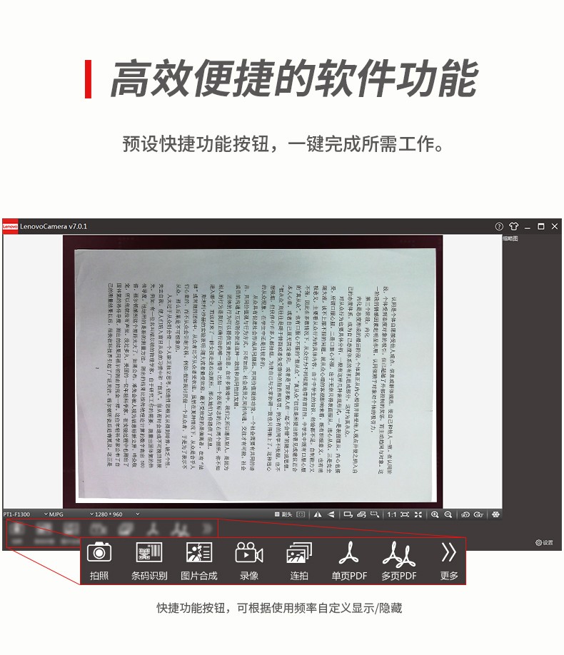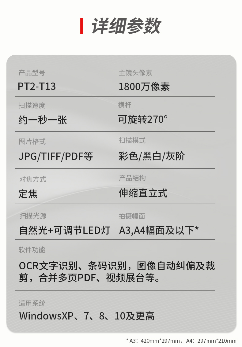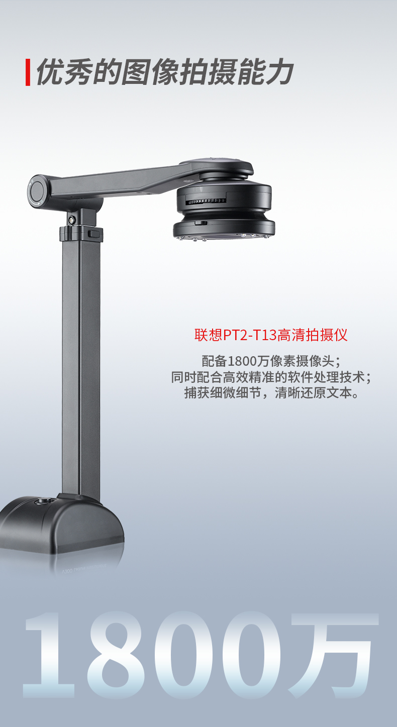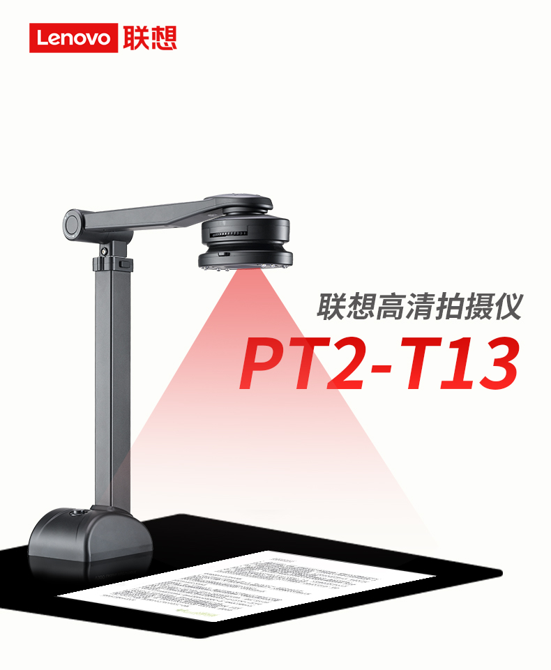 联想PT2-T13高拍仪1800万高清A3大幅面 便携软底座金属横杆270度旋转扫描器