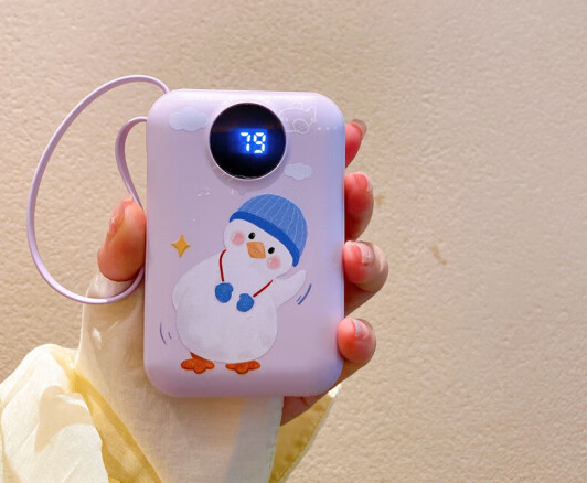 电宝大容量快充小巧便携移动电源适用华为 小清新 紫色招手鸭【挂绳4线+显示】 10000毫安