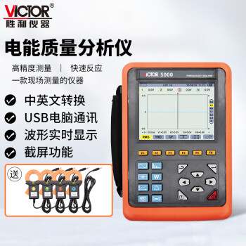 胜利仪器(VICTOR)VC5000 电能质量分析仪 三相电能表 电力谐波测试仪 功率表 40mm电流钳