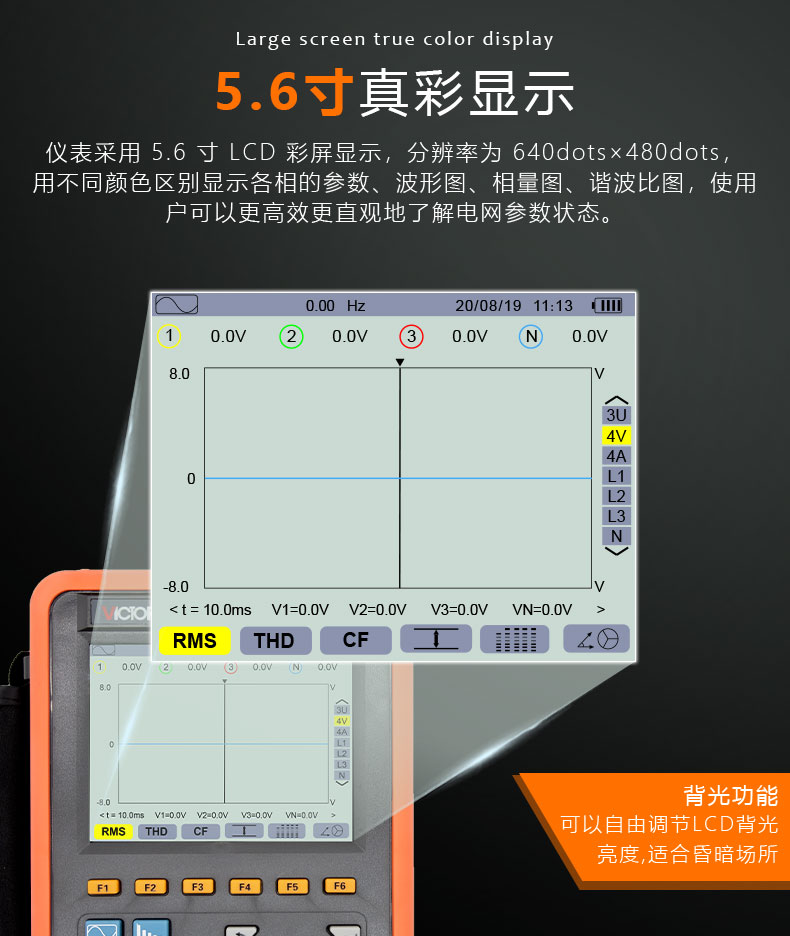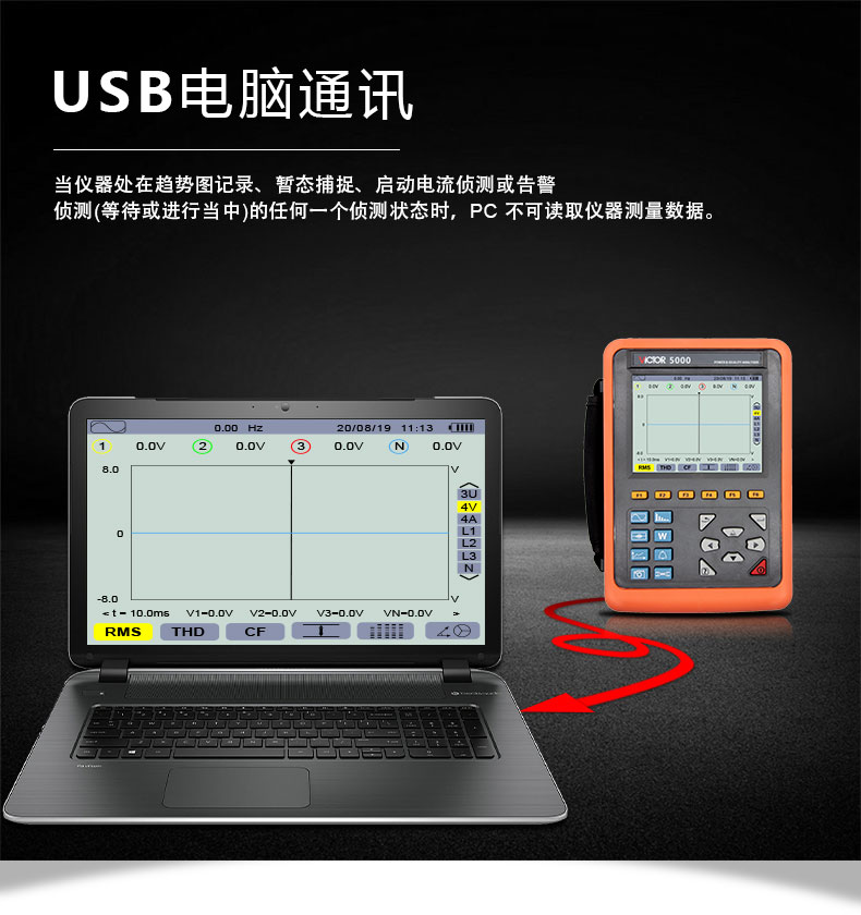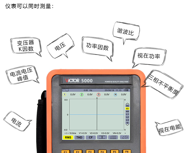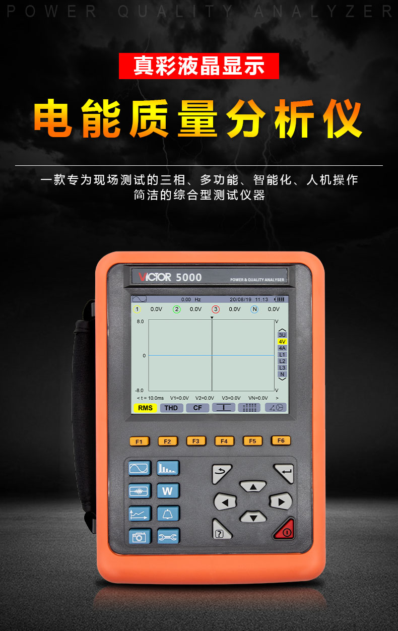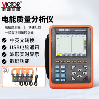 胜利仪器(VICTOR)VC5000 电能质量分析仪 三相电能表 电力谐波测试仪 功率表 68mm电流钳