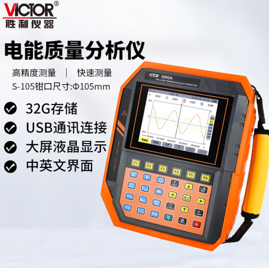 胜利仪器(VICTOR)VC5000A 电能质量分析仪 三相电能表 电力谐波测试仪 功率表 VC5000A(105mm圆口电流钳)