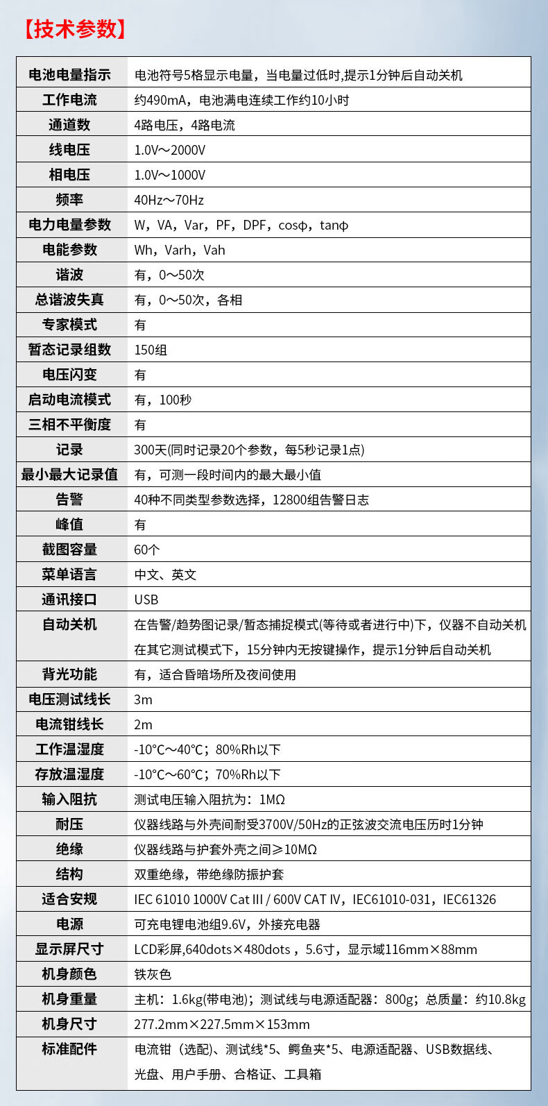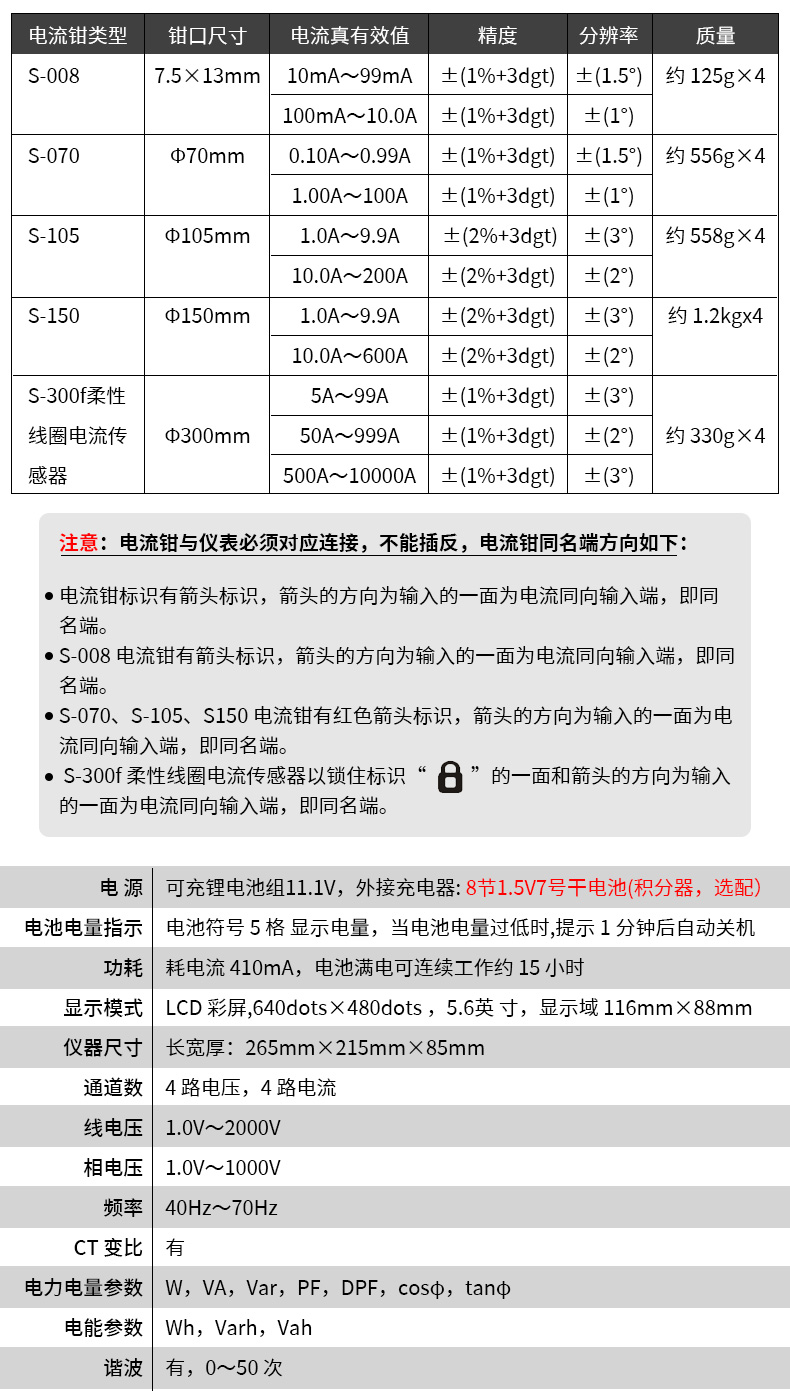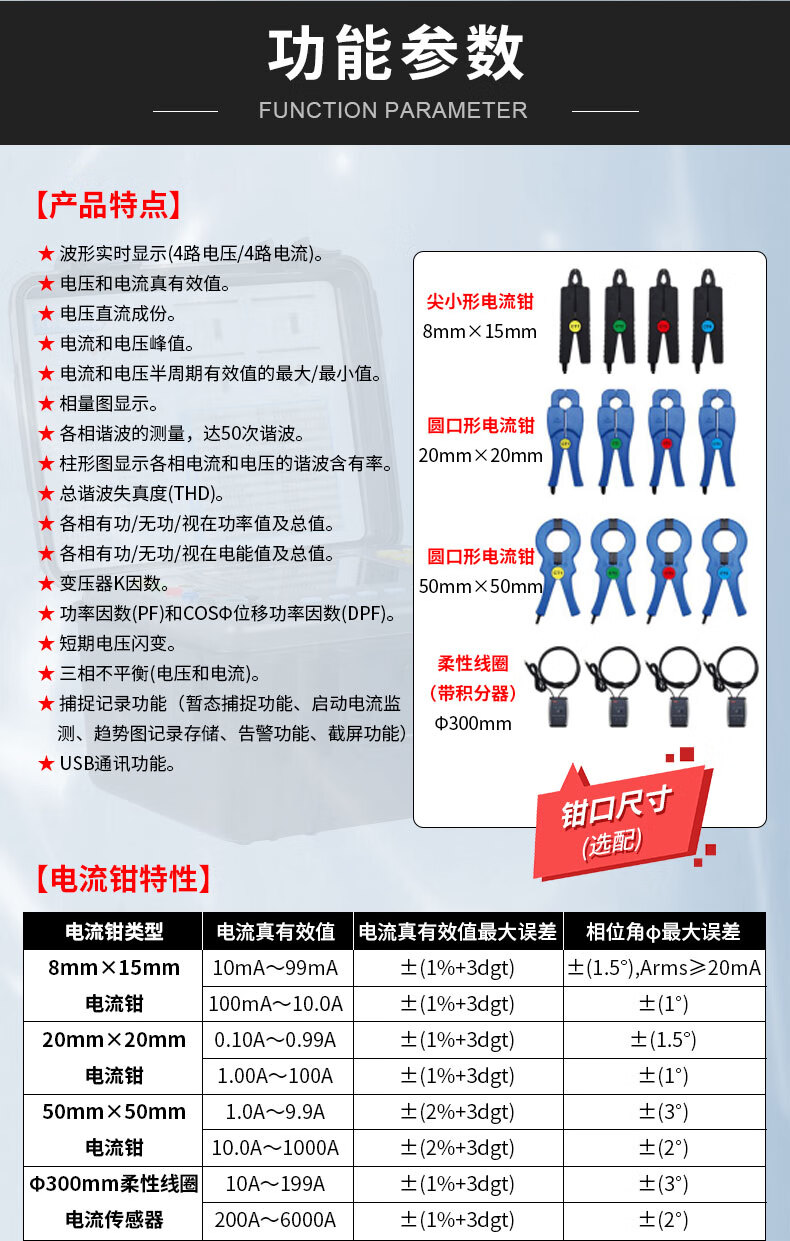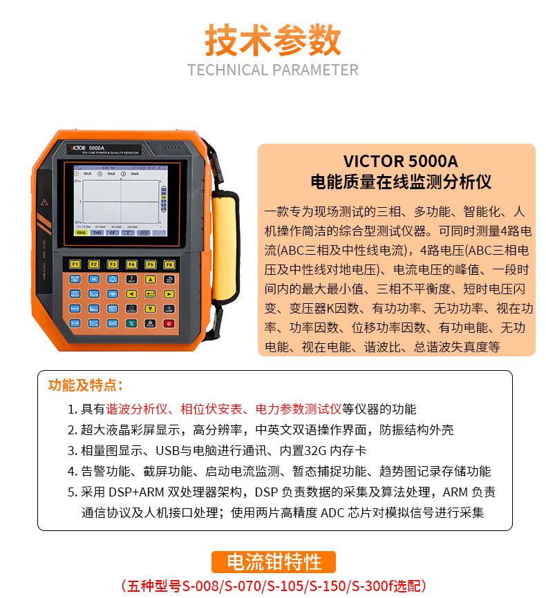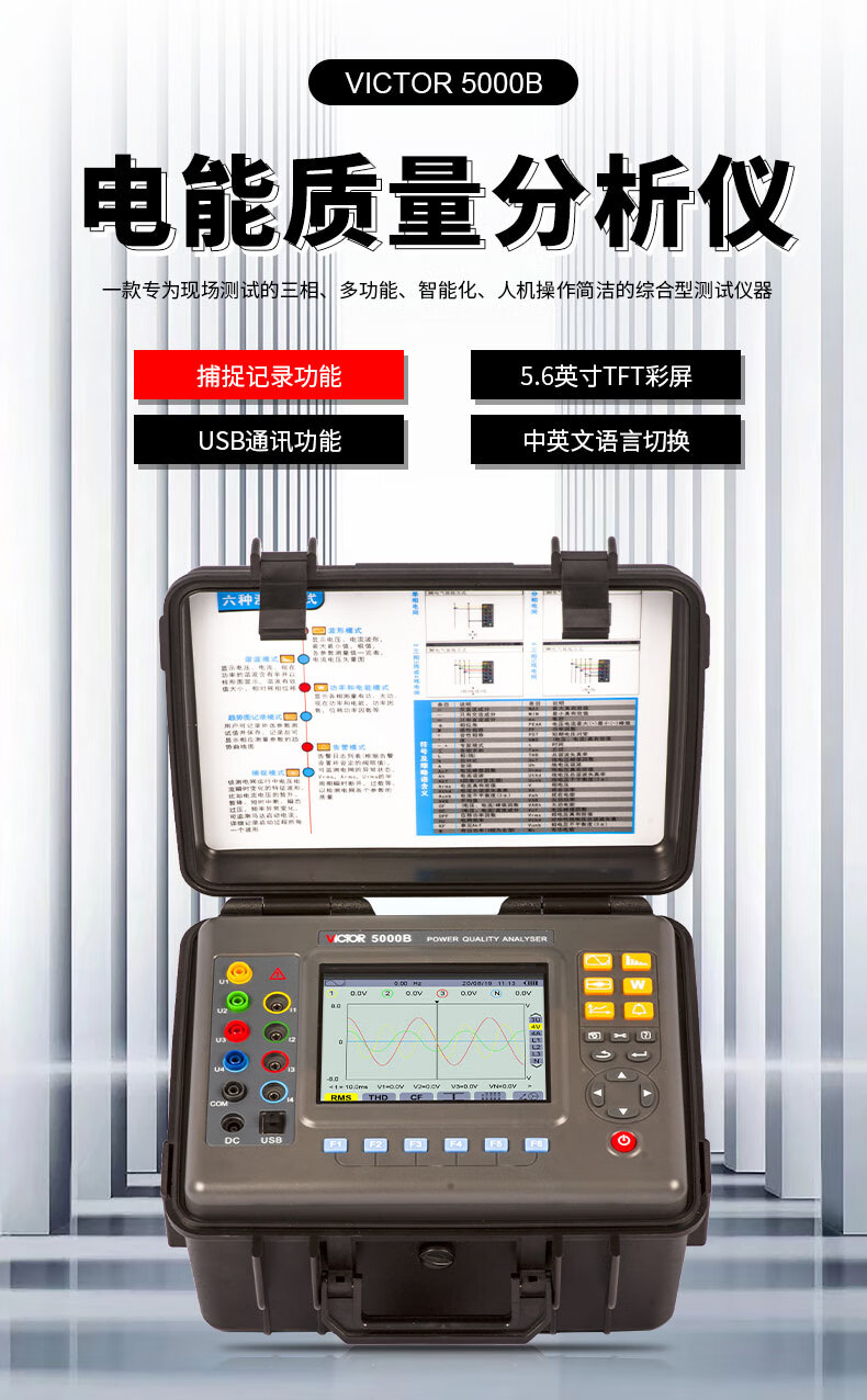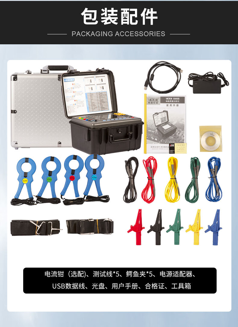 胜利仪器(VICTOR)VC5000A 电能质量分析仪 三相电能表 电力谐波测试仪 功率表 VC5000A(70mm圆口电流钳)