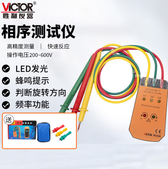胜利仪器 (VICTOR) 三相交流电相位计相序表相序测试仪相位仪相位检测仪 VC850A