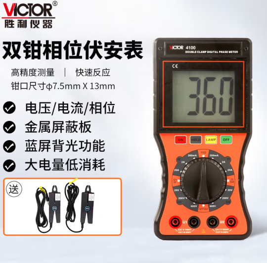 胜利仪器(VICTOR)VC4100 双钳数字相位伏安表 三相相序检测仪 数字相位表