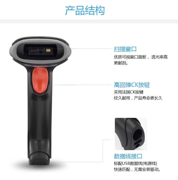 汉王HW-522N 信创国产扫描枪 一二维码扫码枪商品条码枪