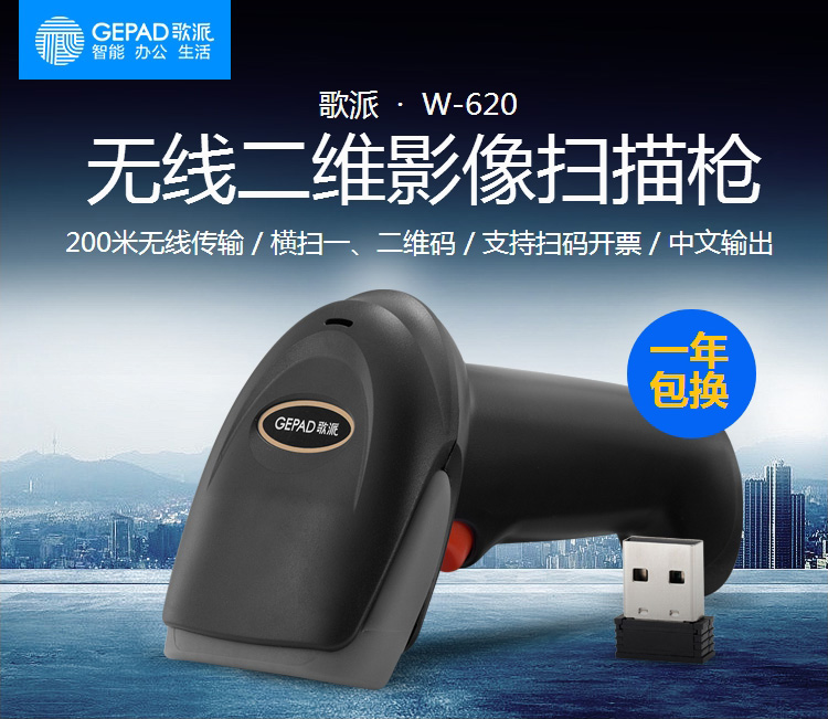 得力(deli)扫码枪无线激光快递单扫描器超市收银条码扫码