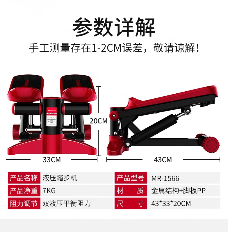 麦瑞克(MERACH) 【网红同款】踏步机 家用静音脚踏机原地慢跑运动健身器材 家用标准版-典雅红