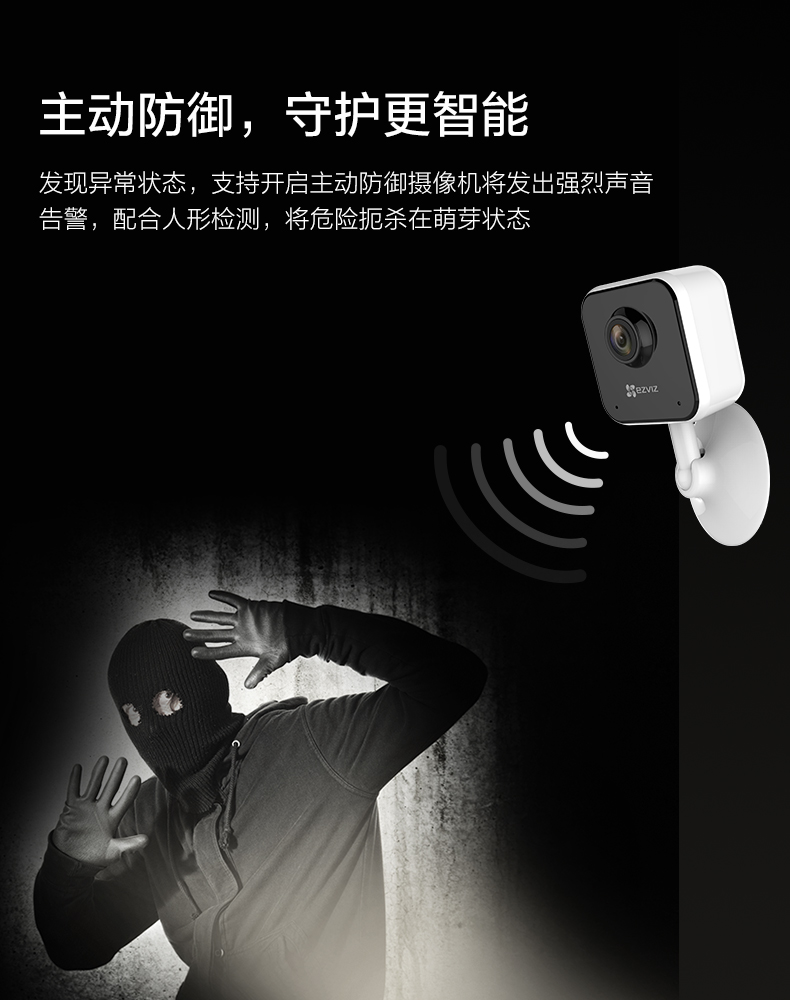 萤石云C1HC监控摄像头无线家用监控器1080P网络高清摄像机手机远程wifi移动侦测夜视12米 C1HC(方款) 带512G内存卡 可存储1个月