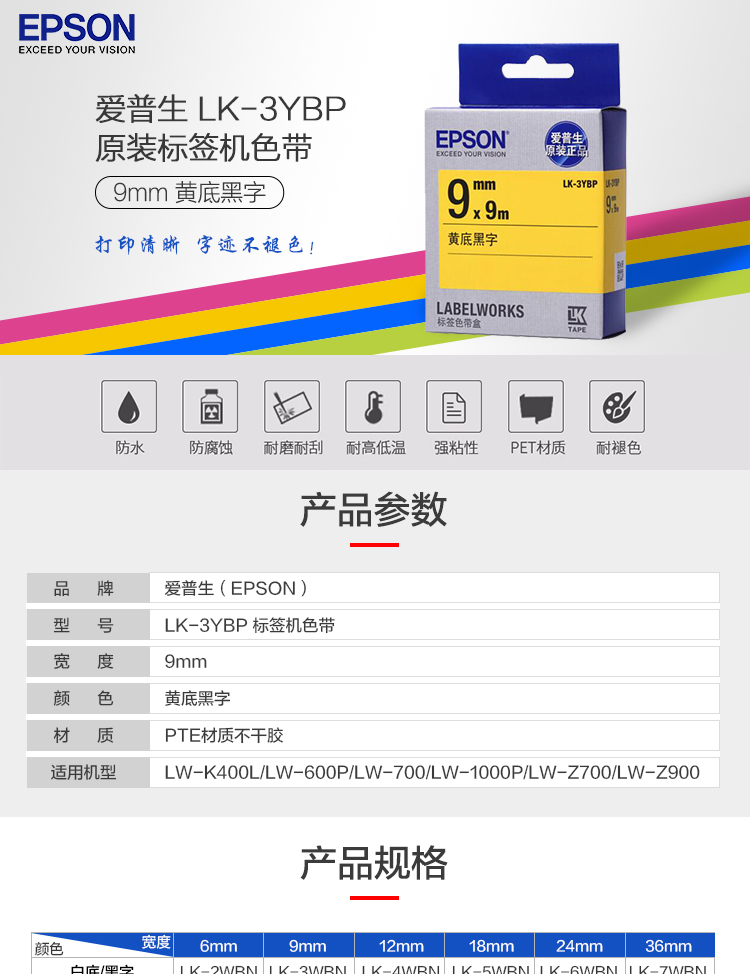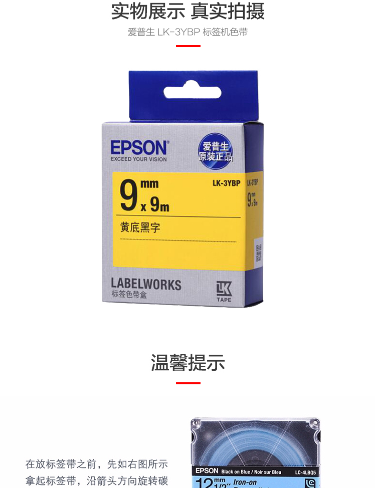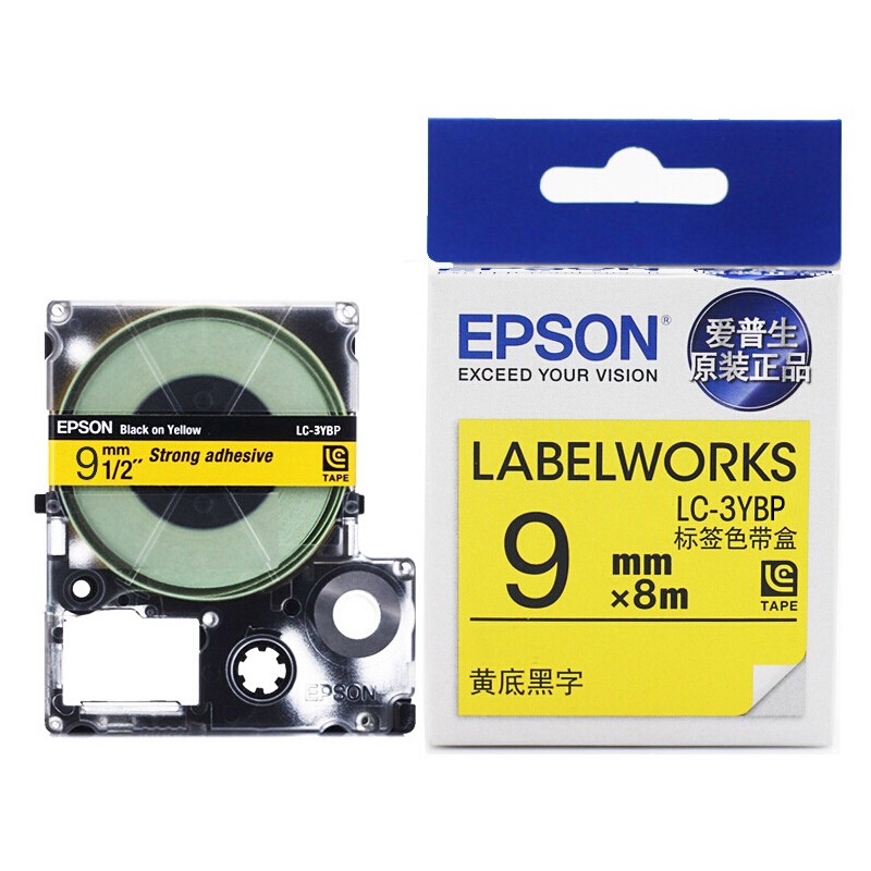 爱普生(EPSON)LK-3YBP 标签机色带 9mm 黄底黑字 (LW-K400L/LW-600P/LW-700/LW-1000P/LW-Z700/LW-Z900)