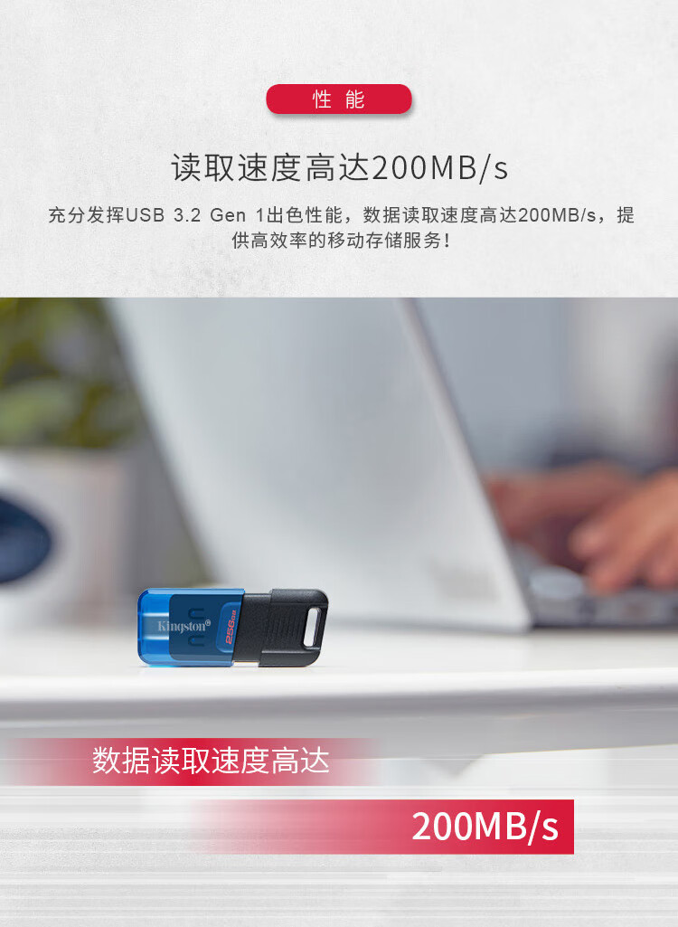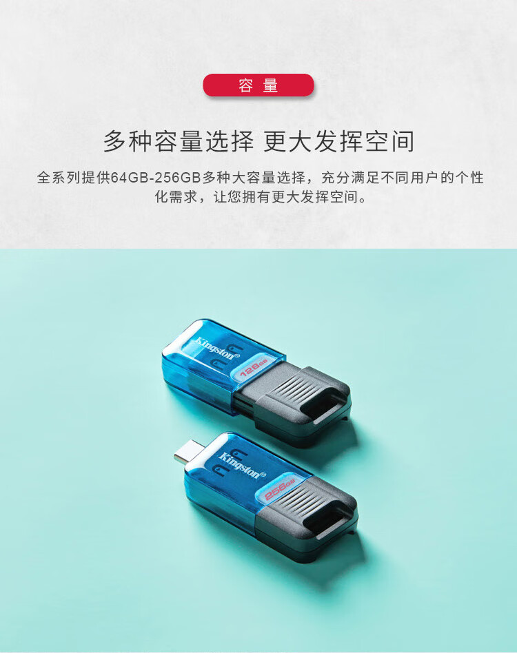 金士顿(Kingston)128GB USB3.2 Gen 1 U盘 DTX 时尚设