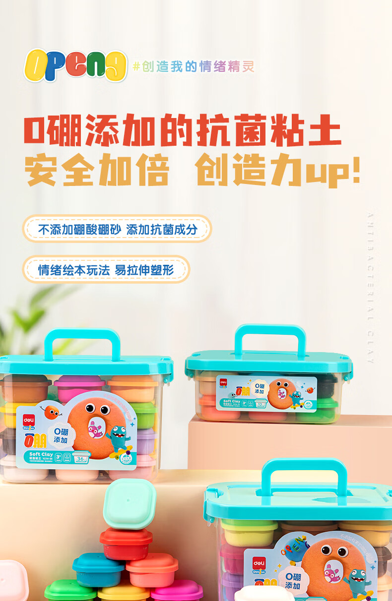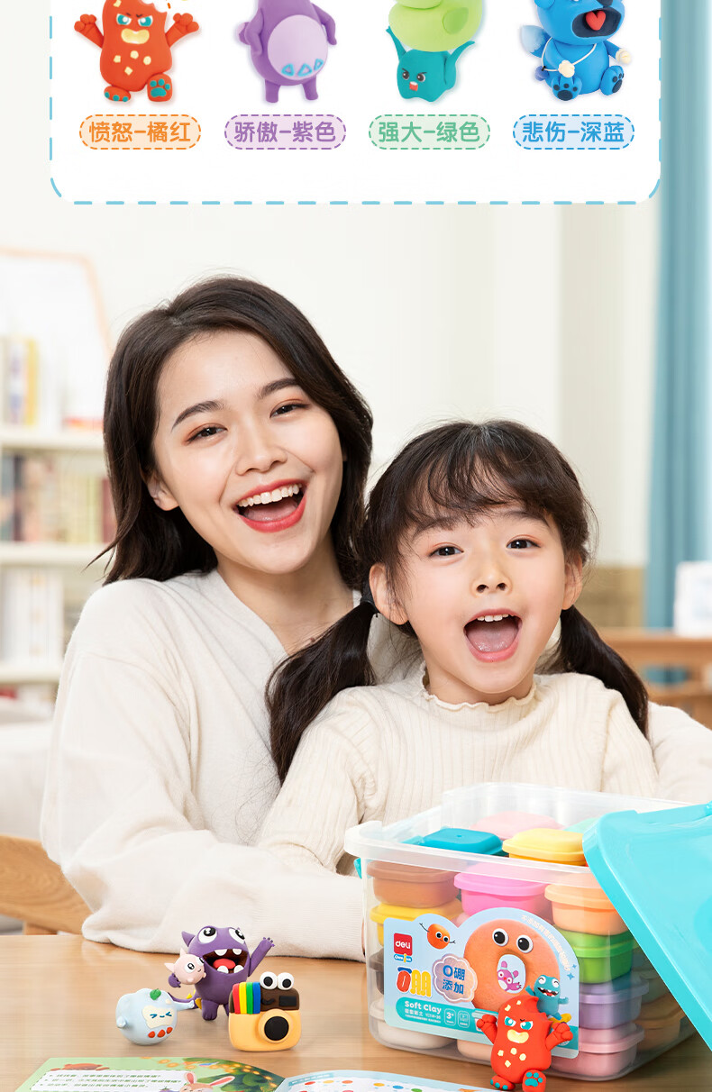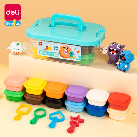 得力(deli)12色无硼粘土 超轻黏土0硼彩泥橡皮泥创意玩具手工DIY 工具箱装YC114-12