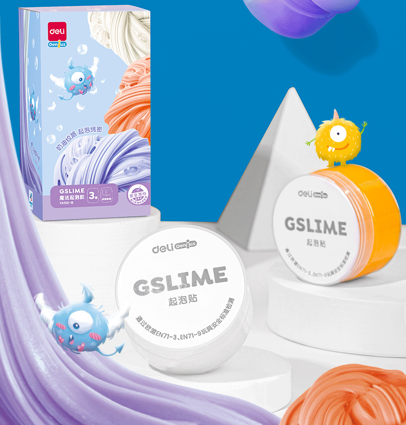 得力(deli)魔法起泡胶3杯装彩泥创意手工儿童DIY玩具YA102-B