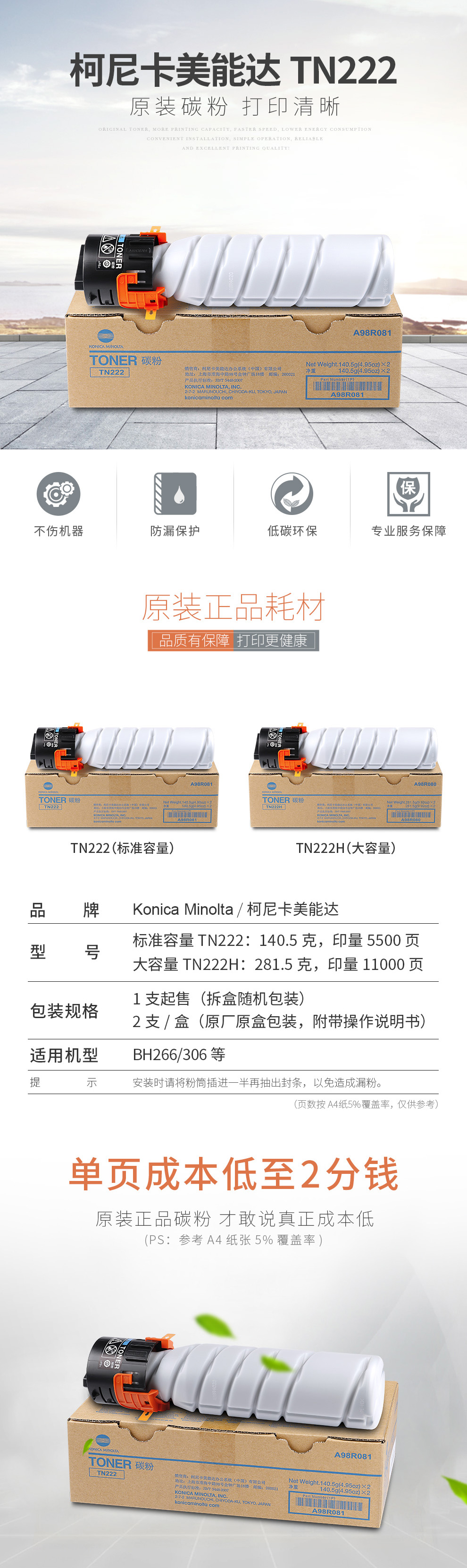 柯尼卡美能达(KONICA MINOLTA) TN222低容黑色碳粉 适用于266/306