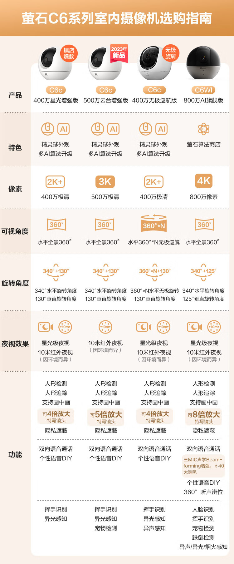 萤石(EZVIZ)C6WI 4K+32G视频监控专用卡 800万超高像素 听声辩位 内置8G存储