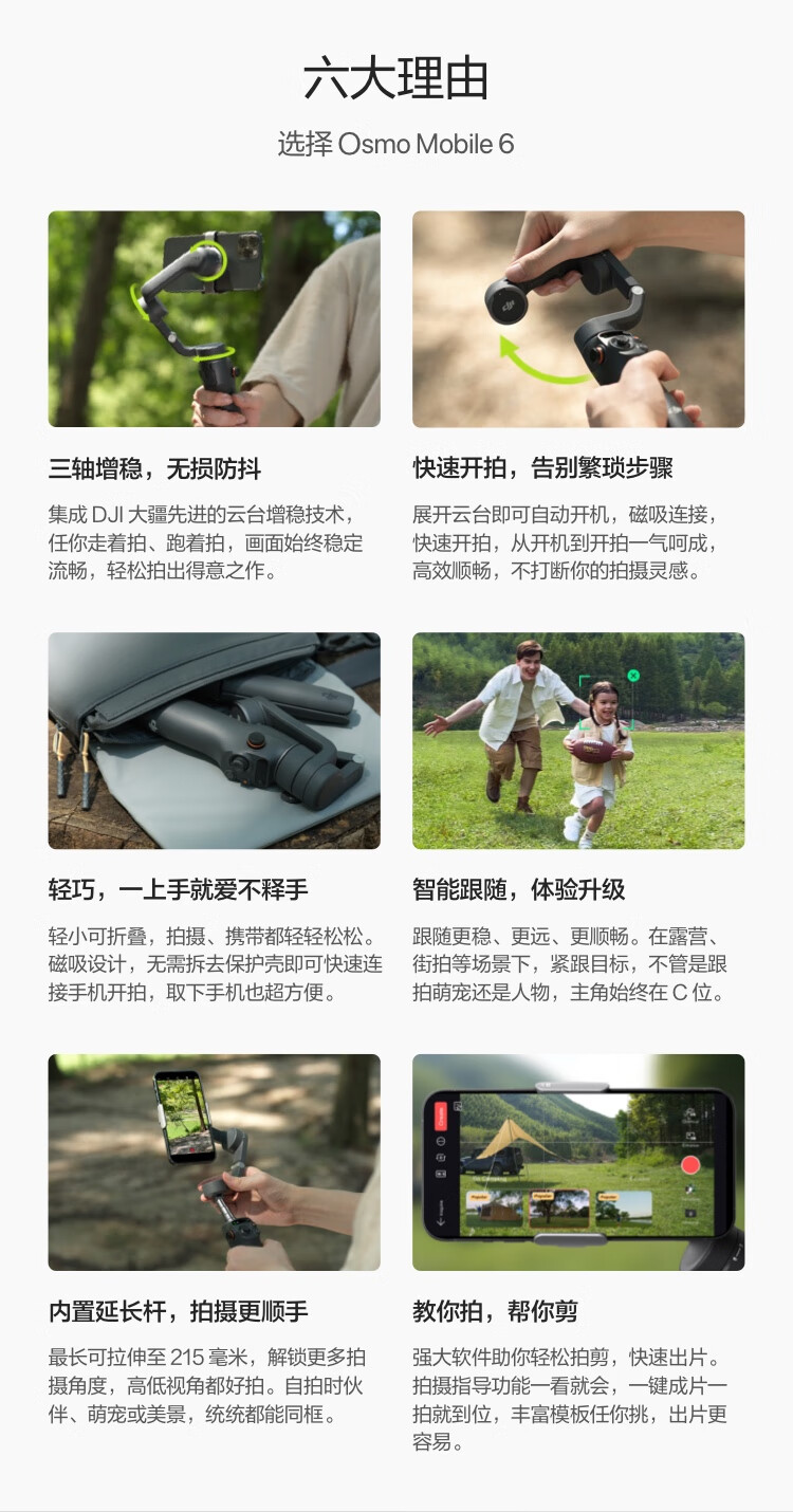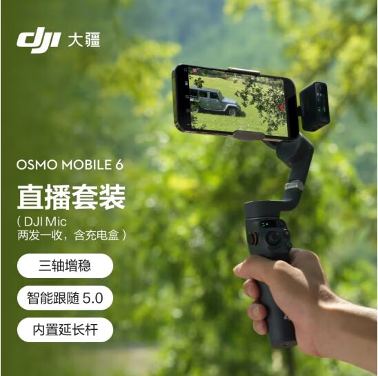 大疆 DJI Osmo Mobile 6 直播套装(DJI Mic 一拖二) OM手机云台稳定器 智能跟随防抖vlog拍摄直播手持稳定器