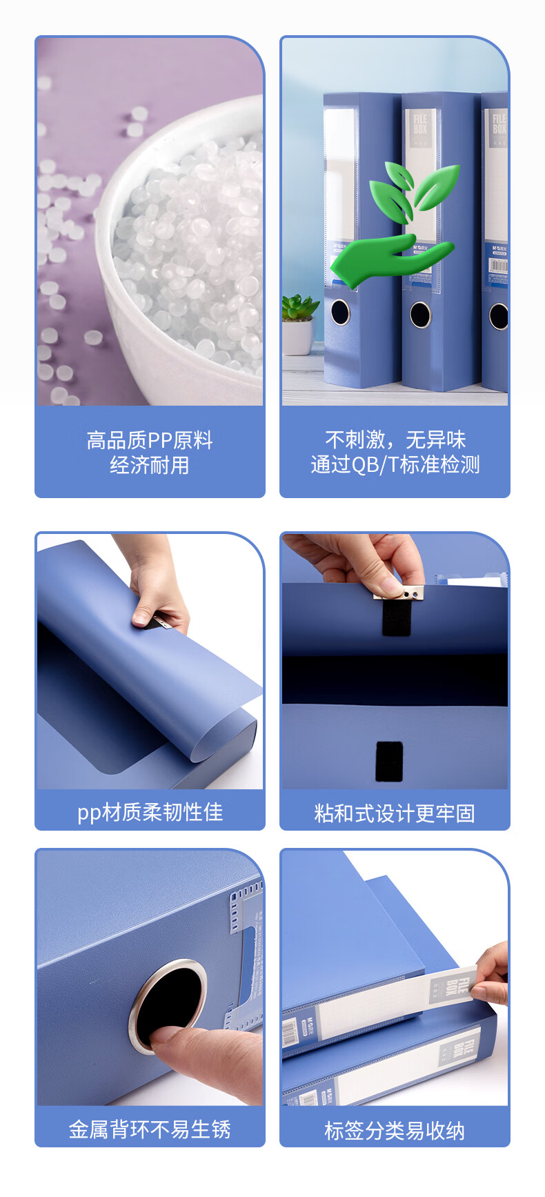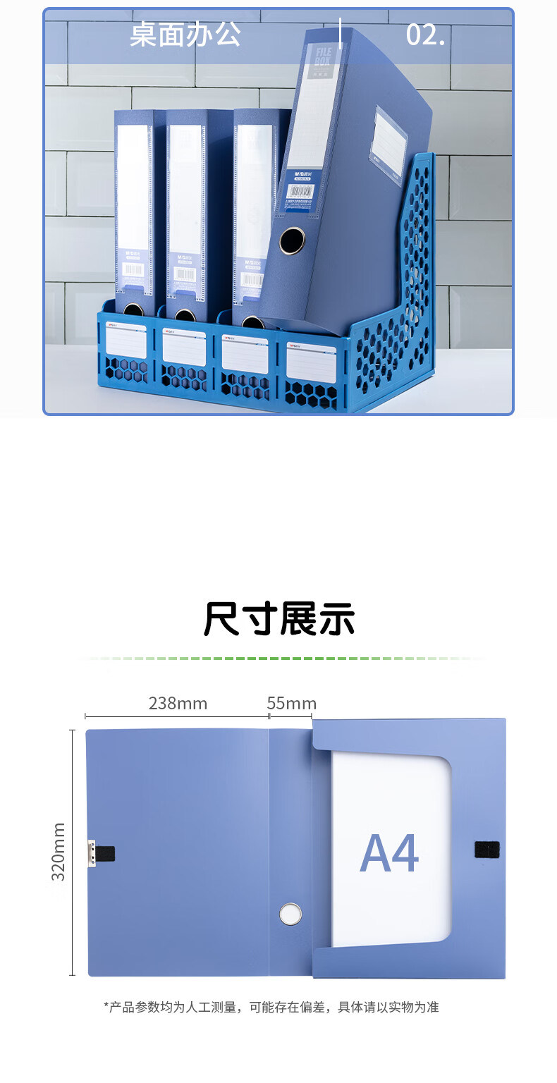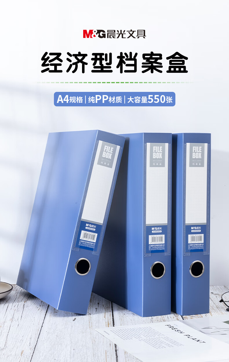 晨光(M&G)ADM929Z9 A4/55mm蓝色粘扣档案盒 文件盒党建资料盒 10个装