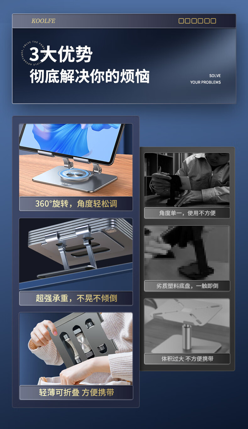 KOOLIFE 平板支架iPad苹果平板电脑支撑架子 手机桌面支架和平精英吃鸡游戏专用旋转底座华为pro/air/mini/10