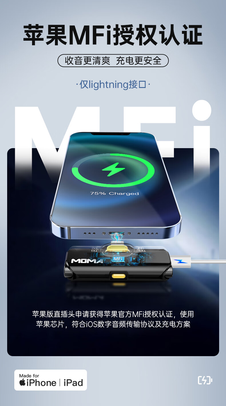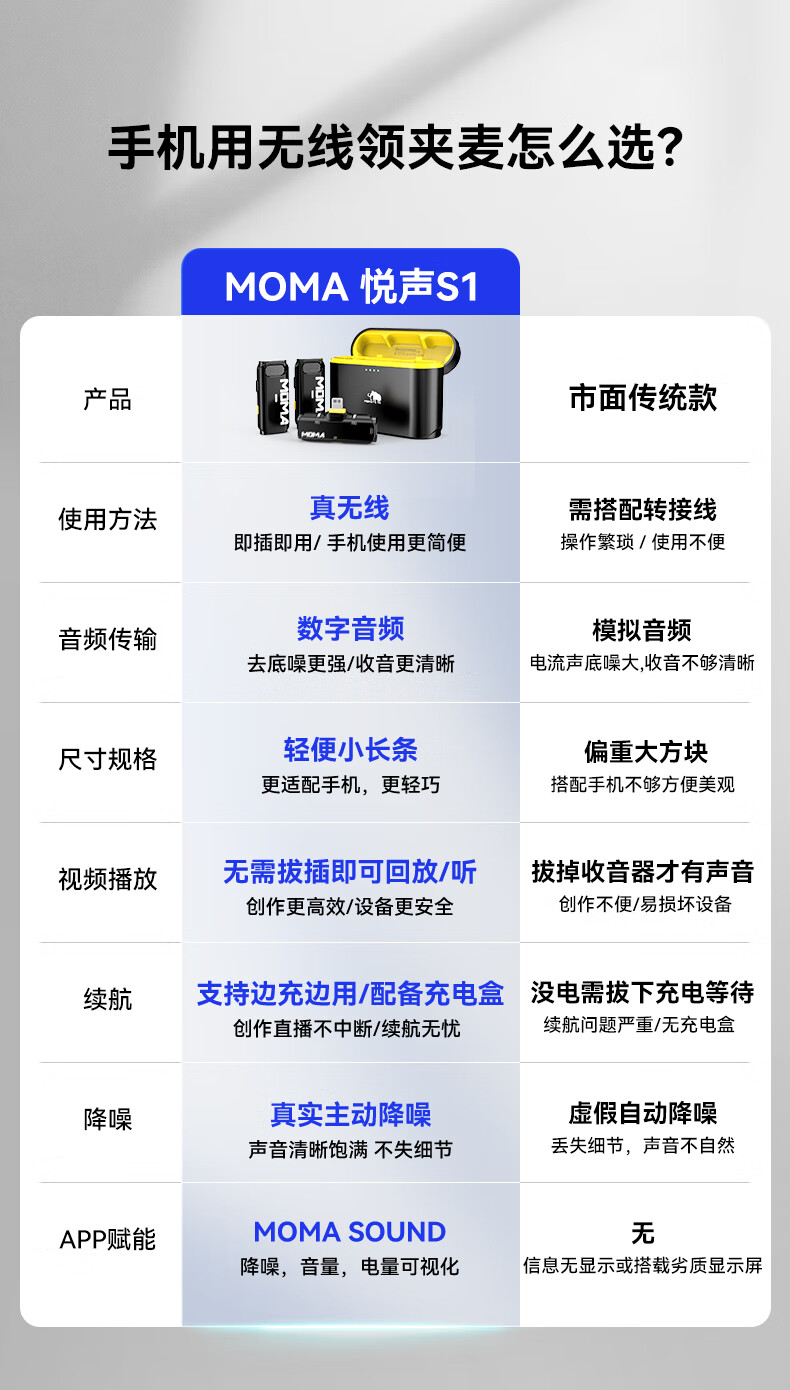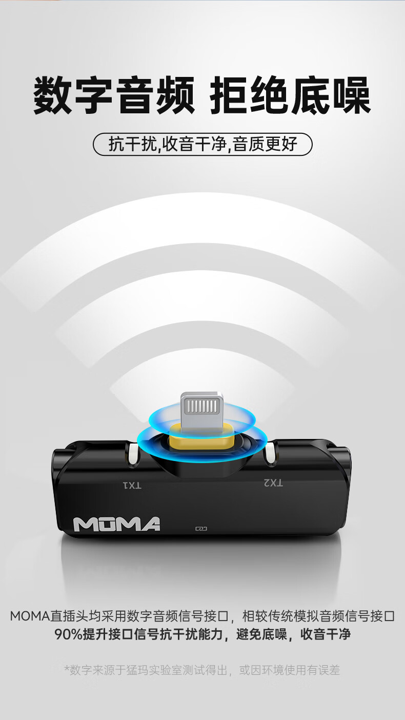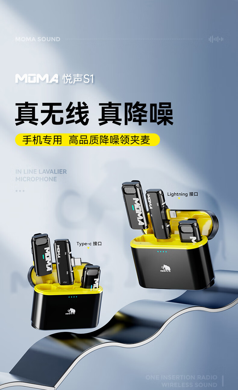 猛玛(MOMA)无线领夹麦克风猛犸悦声S1一拖二小蜜蜂vlog直播户外采访录音降噪声卡手机收音麦安卓版