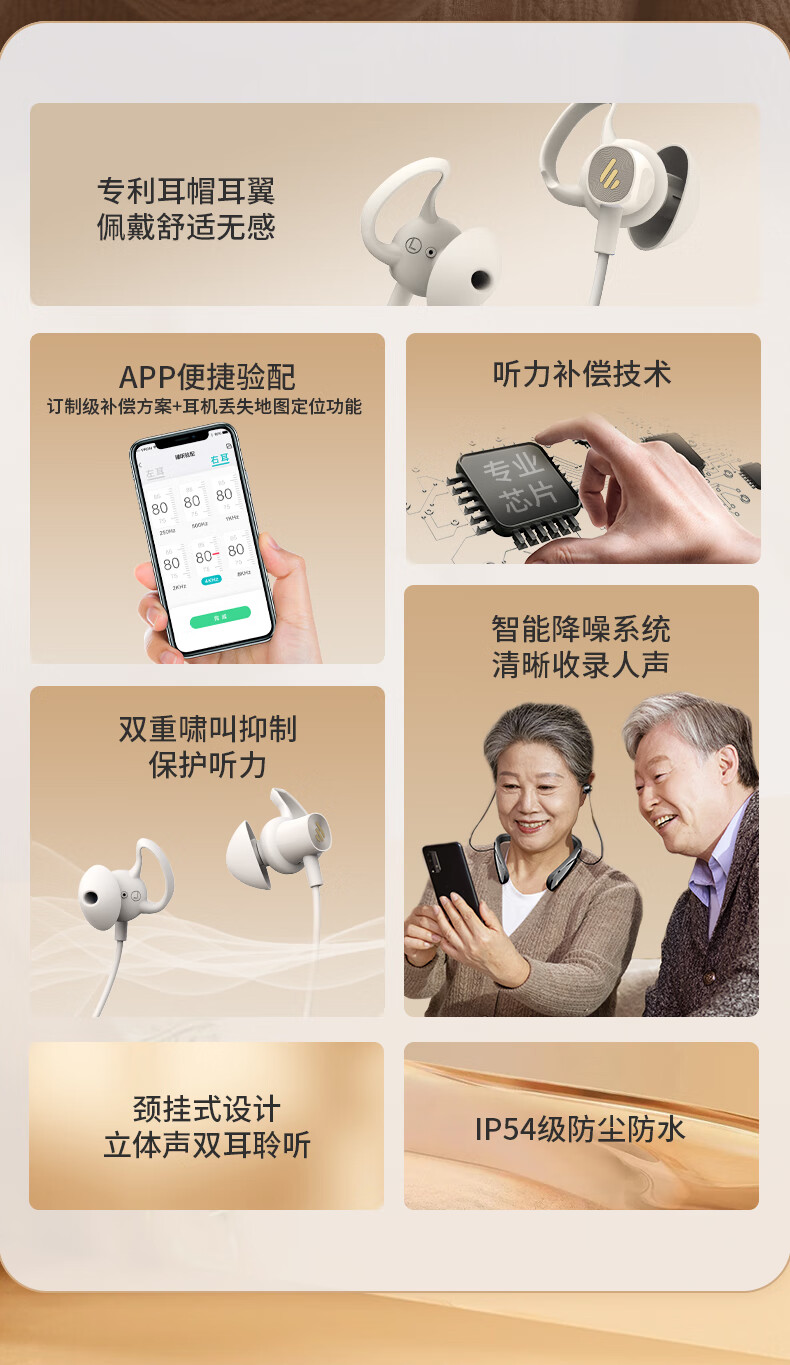 漫步者(EDIFIER)辅听1号2 EDF800007助听耳机老年人耳聋耳背专用双耳辅听器 送长辈 年轻人 典雅白