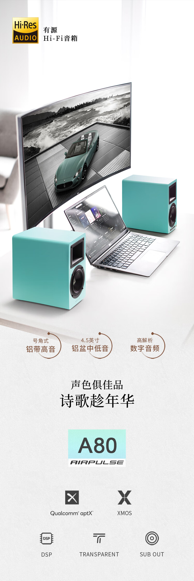 漫步者(EDIFIER)AIRPULSE A80 书架式有源音箱 蓝牙音箱 客厅音响 电视音响 胡桃木