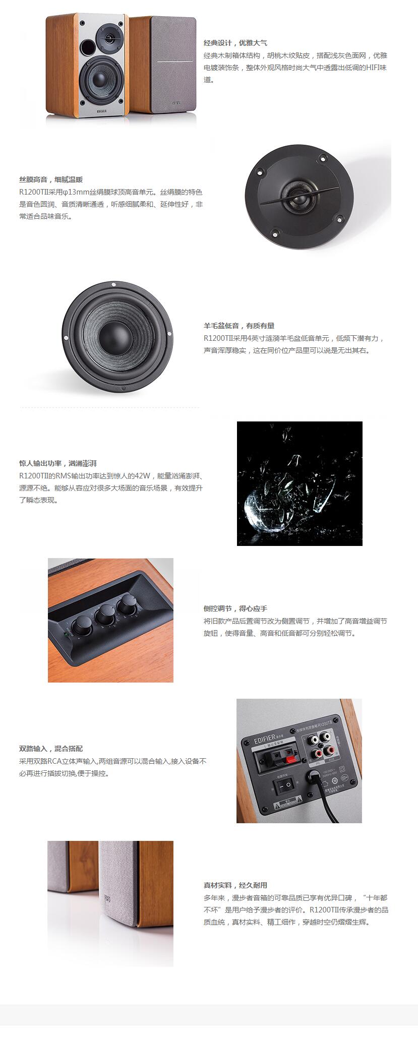 漫步者(EDIFIER)R1200TII 2.0电脑音响 笔记本台式机桌面音响 书架音箱