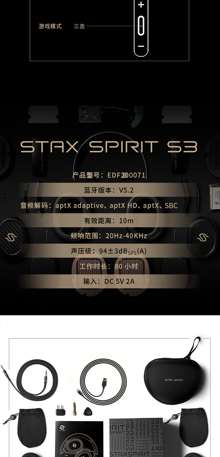 漫步者(EDIFIER)STAX SPIRIT S3 头戴式平板蓝牙耳机 HIFI耳机 手机耳机 通用苹果华为小米手机 黑色