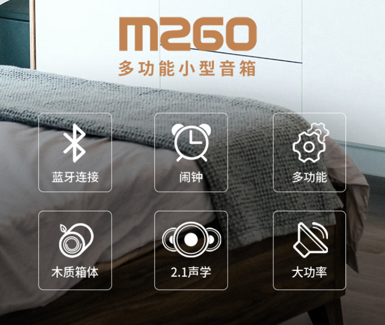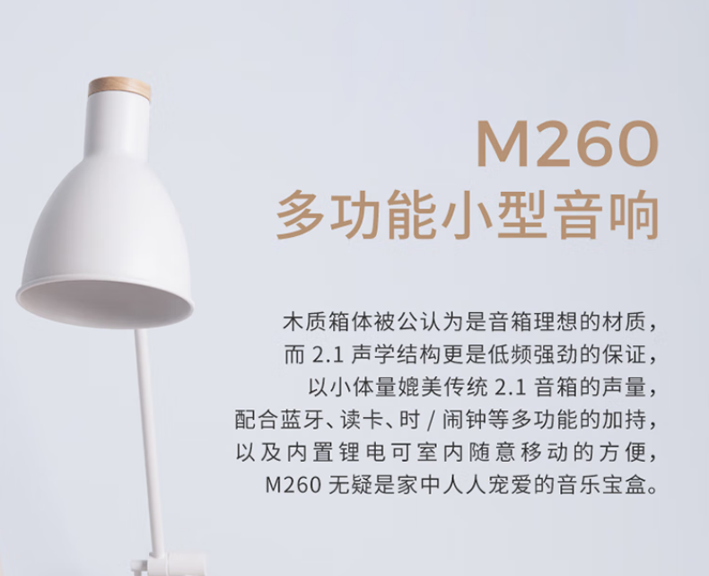 漫步者(EDIFIER)M260 多功能小型音箱 蓝牙音箱 闹钟音箱 有源音箱 电脑音响 清新版