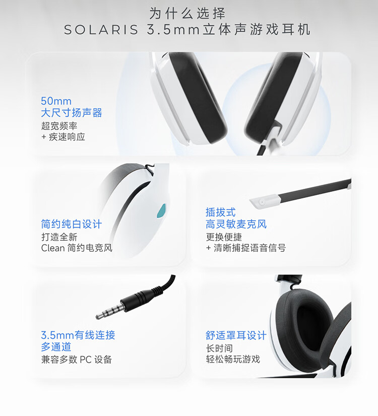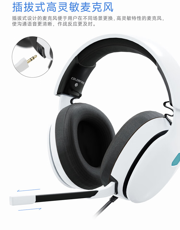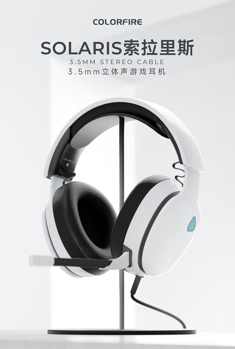 Colorfire头戴式耳机 3.5mm有线手机耳麦带麦克风网课耳机办公游戏 索拉里斯 FE-H01-112 白色