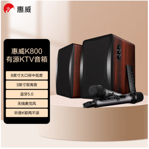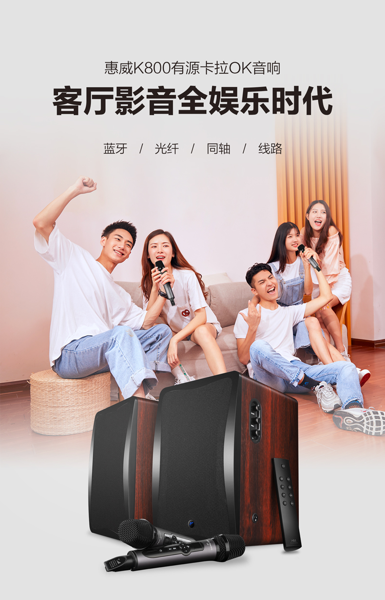 惠威(HiVi) K800 有源KTV音箱 专业无线麦克风K歌卡拉OKHIFI音响支持蓝牙光纤同轴音箱