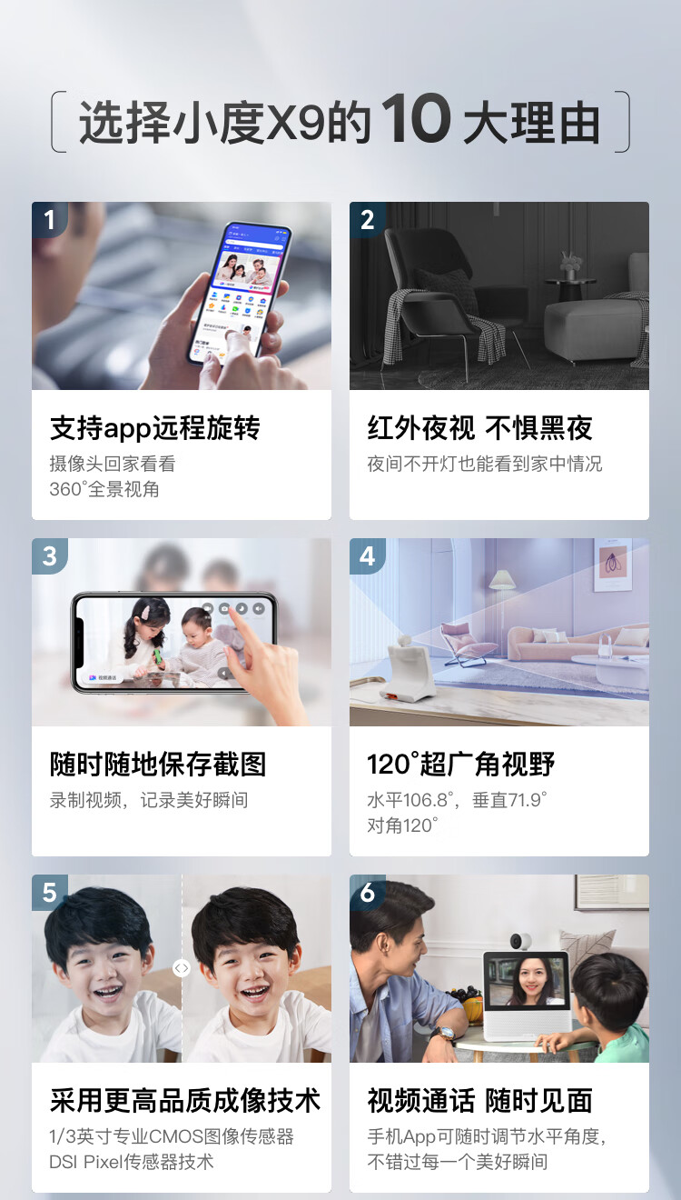 小度智能屏X9 云台360度摄像 红外夜视 视频监控 蓝牙音箱音响 K歌看剧 小孩老人学习看护陪伴 礼物
