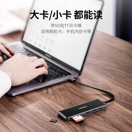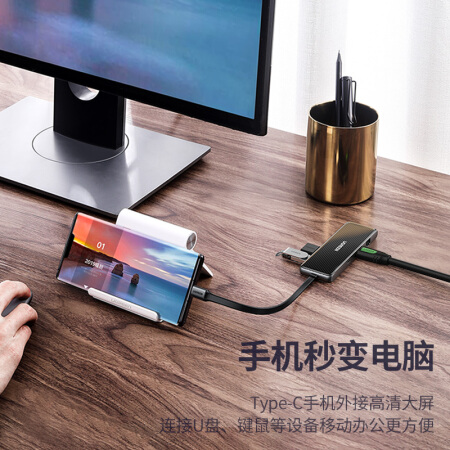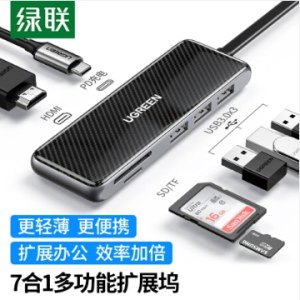 绿联(UGREEN)70550 Type-C扩展坞 USB-C转HDMI转换器4K投屏3.0HUB分线器读卡器电脑拓展坞 七合一