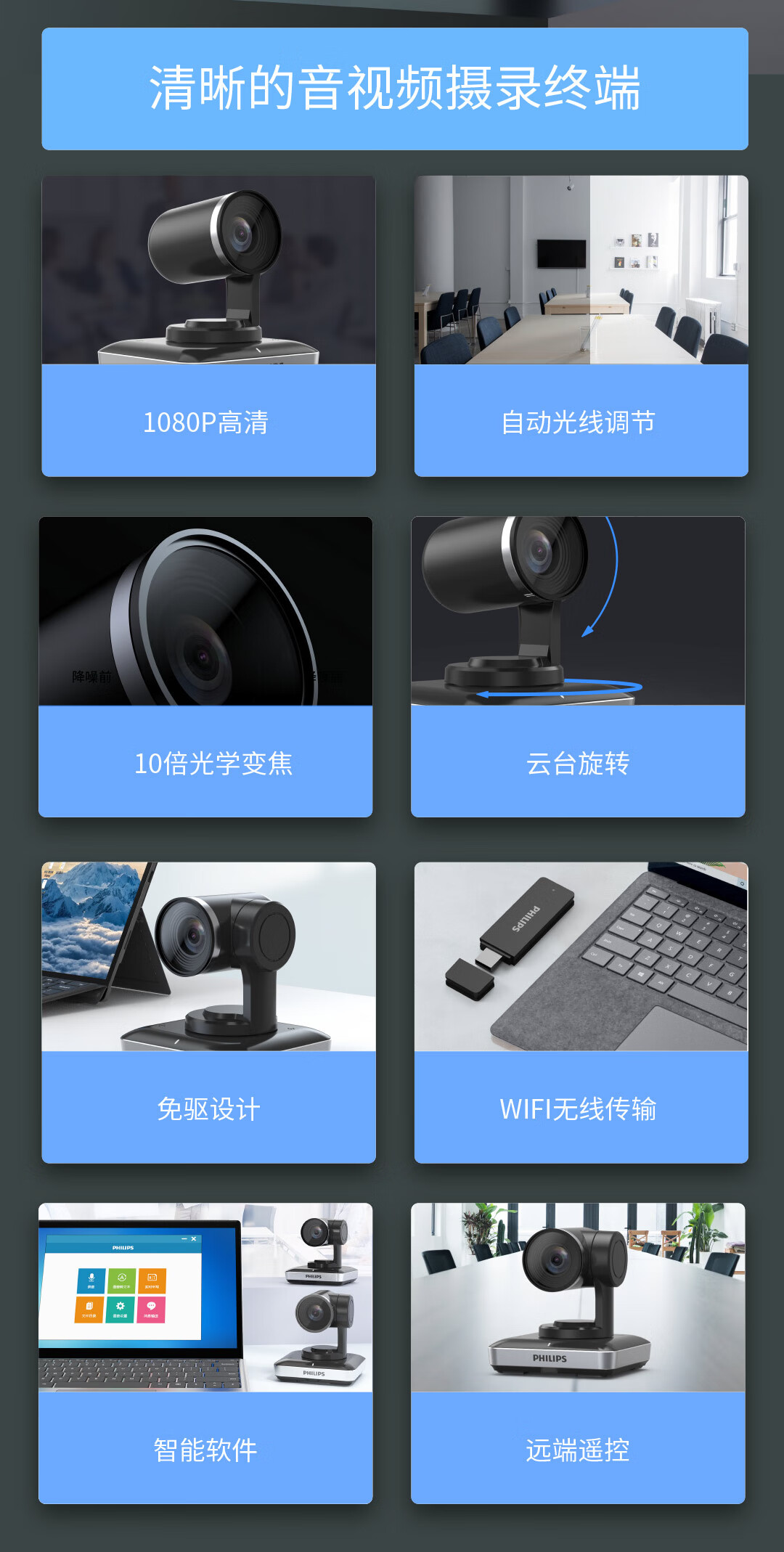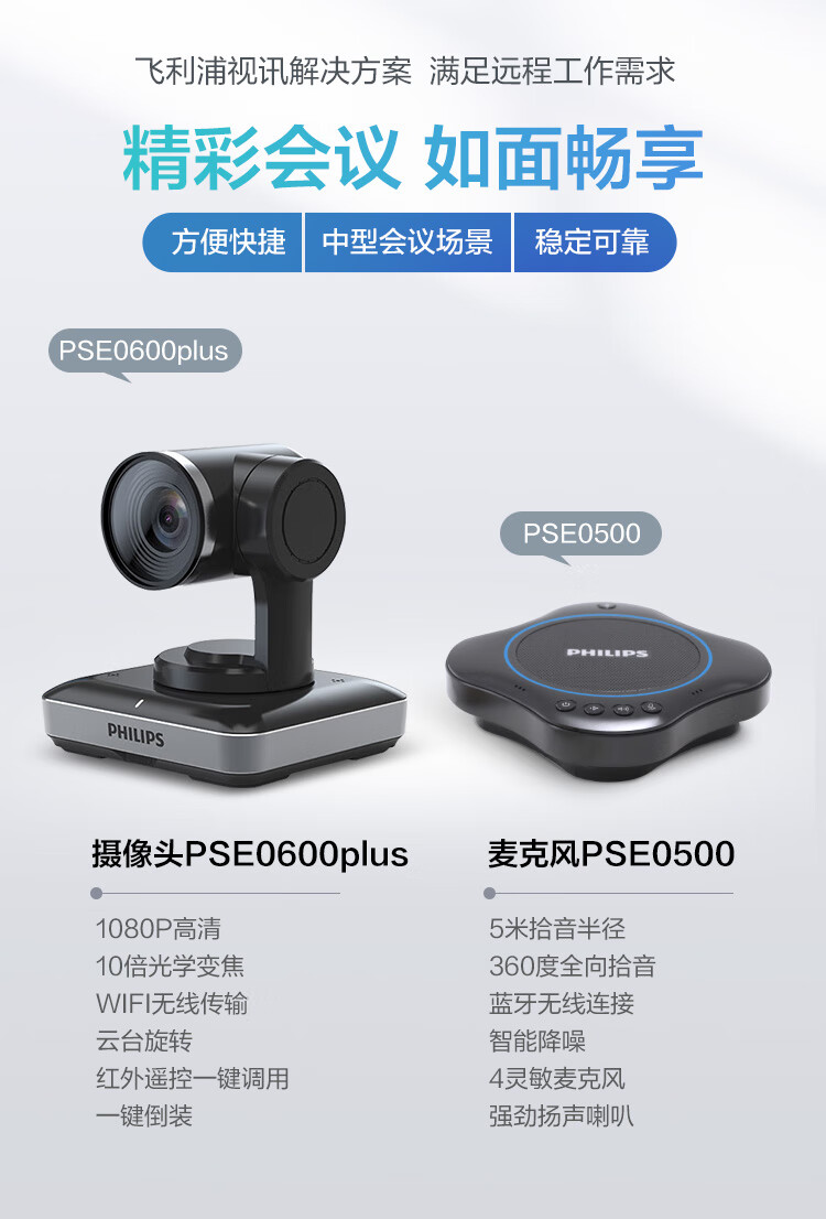 飞利浦(PHILIPS)PSE0600PLUS+PSE0500视频会议套装 适用40㎡内 5米拾音半径全向麦克风+1080P视频会议无线电脑摄像头套装