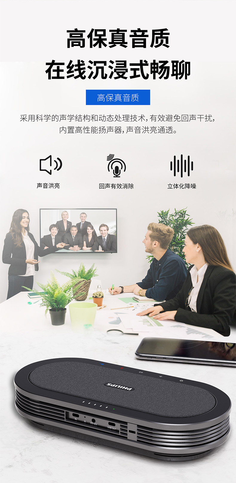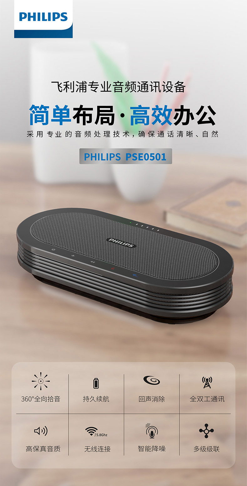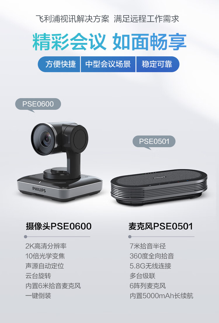 飞利浦(PHILIPS)PSE0501+PSE0600视频会议套装 适用50㎡内 7米拾音半径全向麦克风+10倍变焦2K高清视频会议摄像头套装