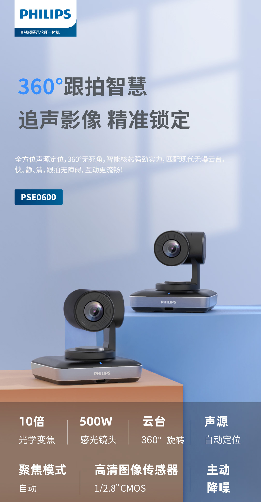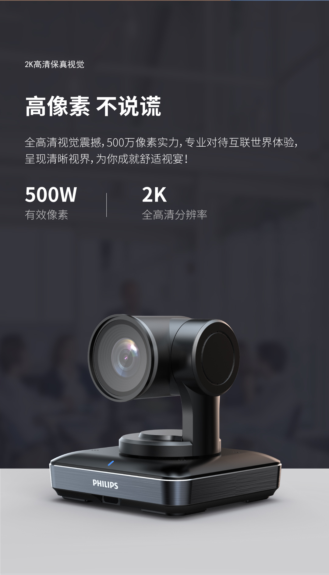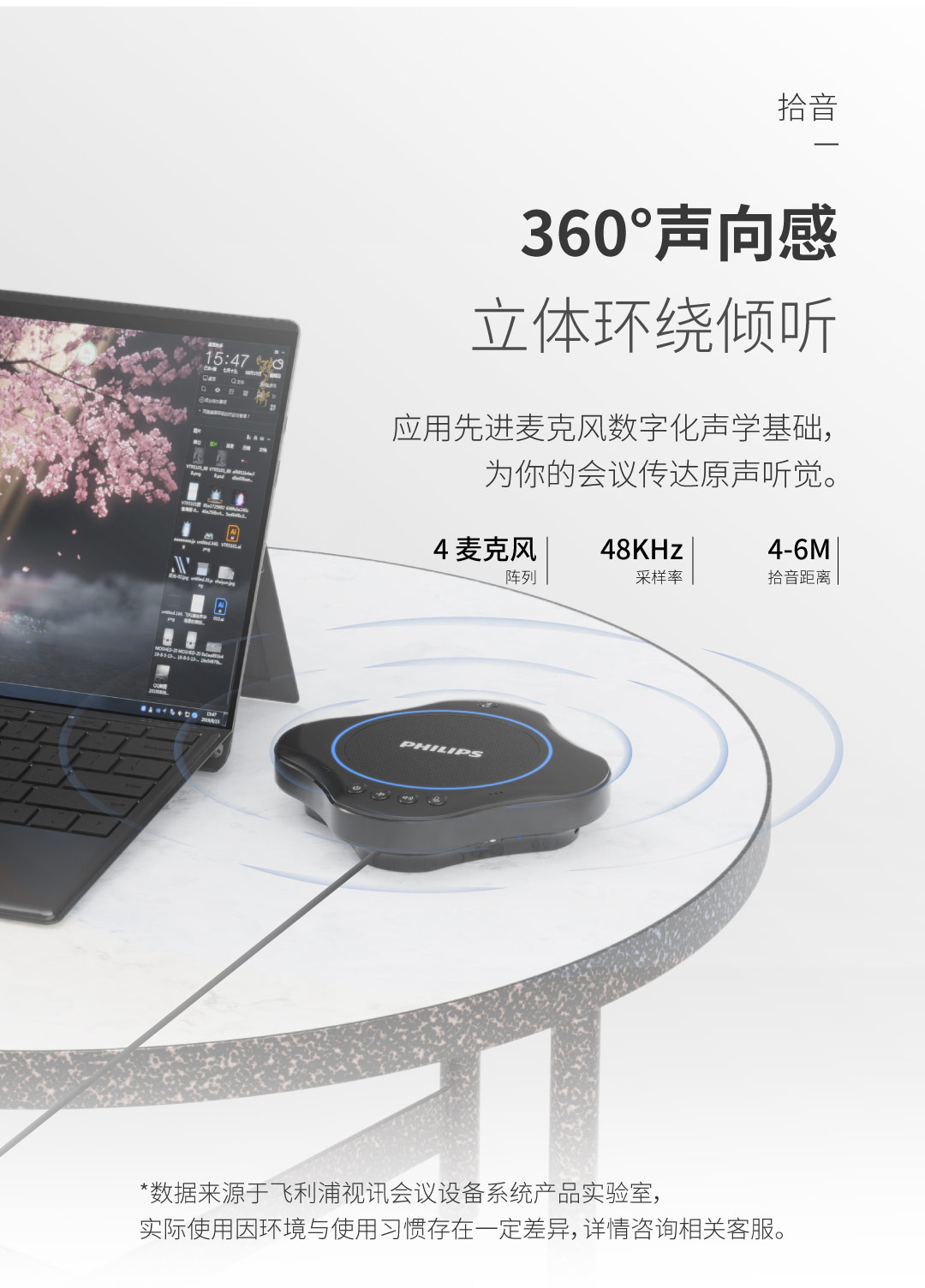 飞利浦(PHILIPS)PSE0600+PSE0500+PSE0400视频会议套装 适用50㎡内 2K视频会议摄像头+5米拾音半径全向麦克风+扩展拾音麦