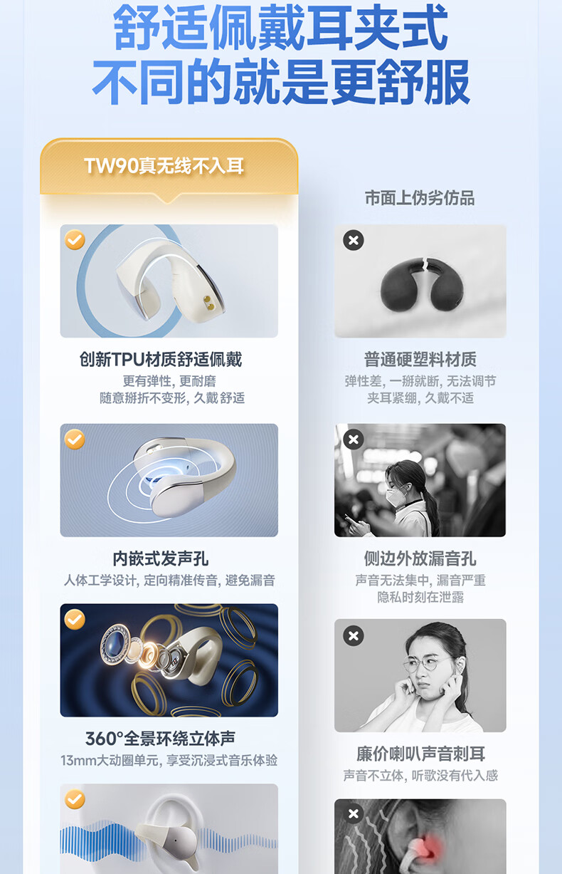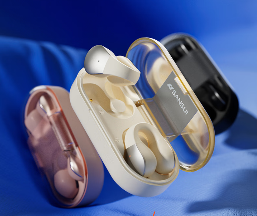 山水(SANSUI)TW90 蓝牙耳机 不入耳开放式 骨传导概念无线耳夹式 适用于华为苹果小米 白