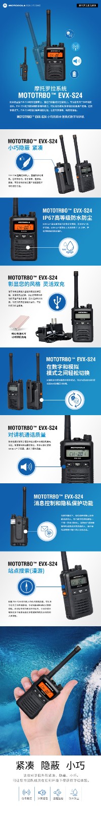 摩托罗拉(Motorola)S24 数字模拟EVX-S24 高效IP67防尘防水手台