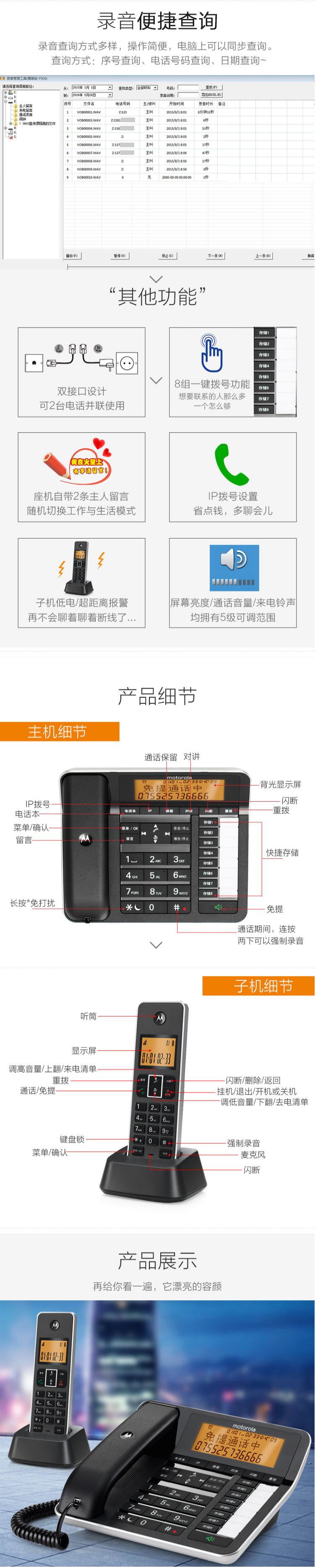 摩托罗拉(Motorola)录音电话机 C7501RC一拖四