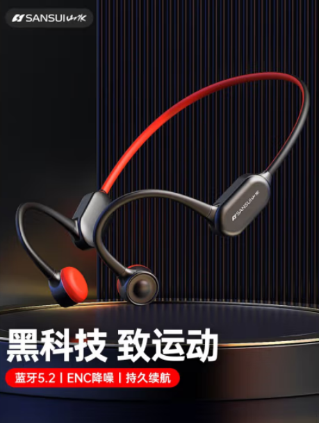 山水(SANSUI)TG26蓝牙耳机 骨传导耳机不入耳 适用苹果华为VIVO安卓 升级版5.3蓝牙黑红