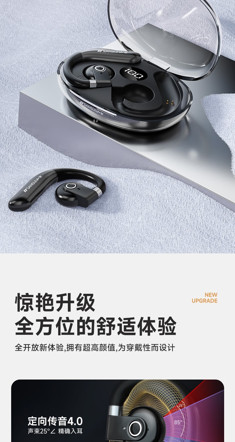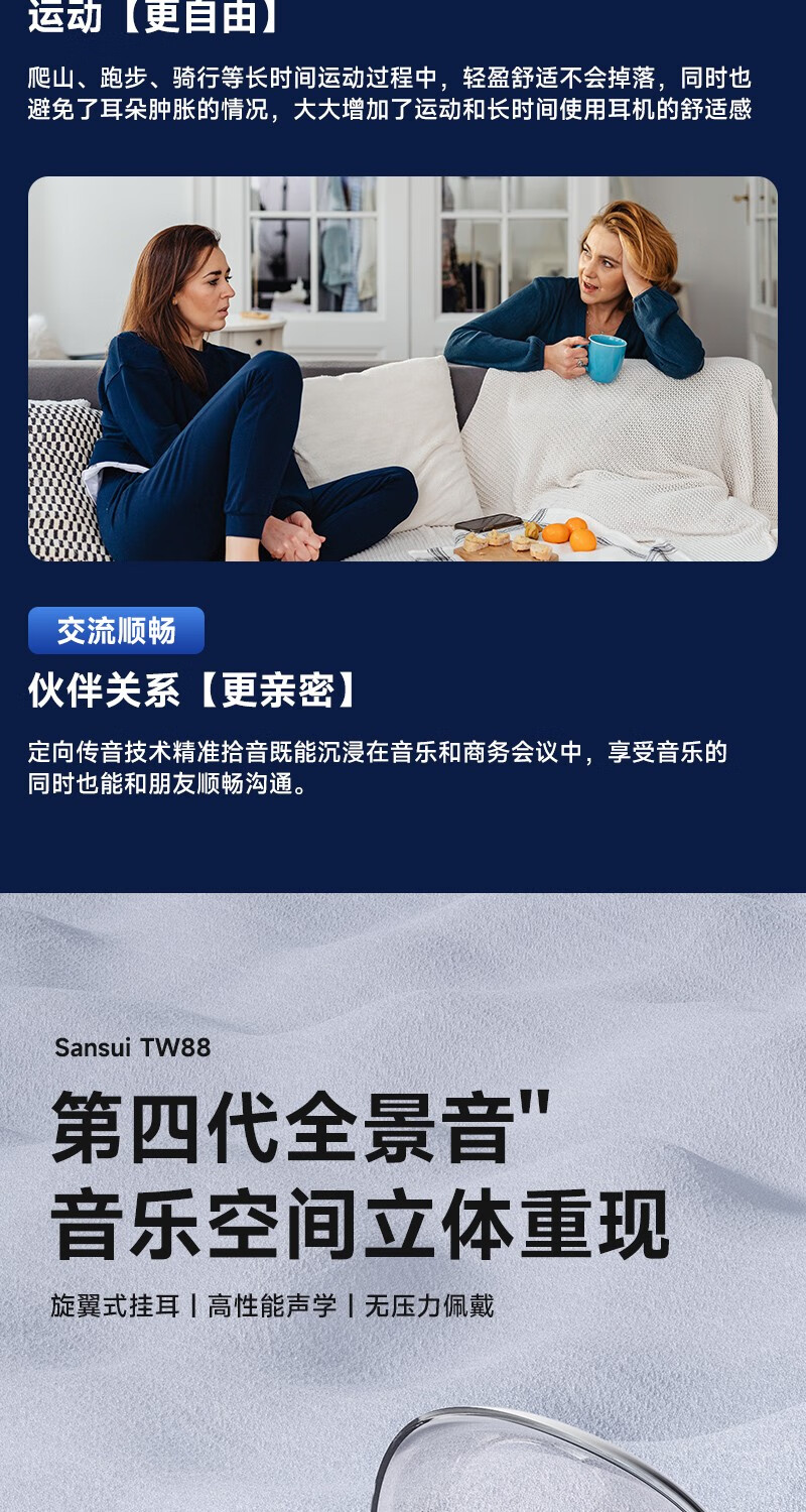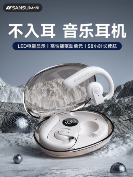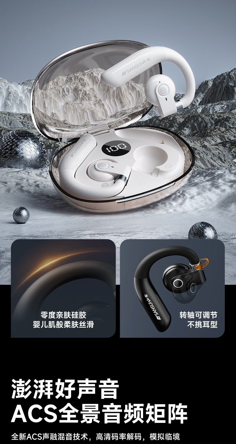山水(SANSUI)TW88蓝牙耳机 挂耳式开放不入耳骨传导 适用苹果华为安卓 尊享版-白色