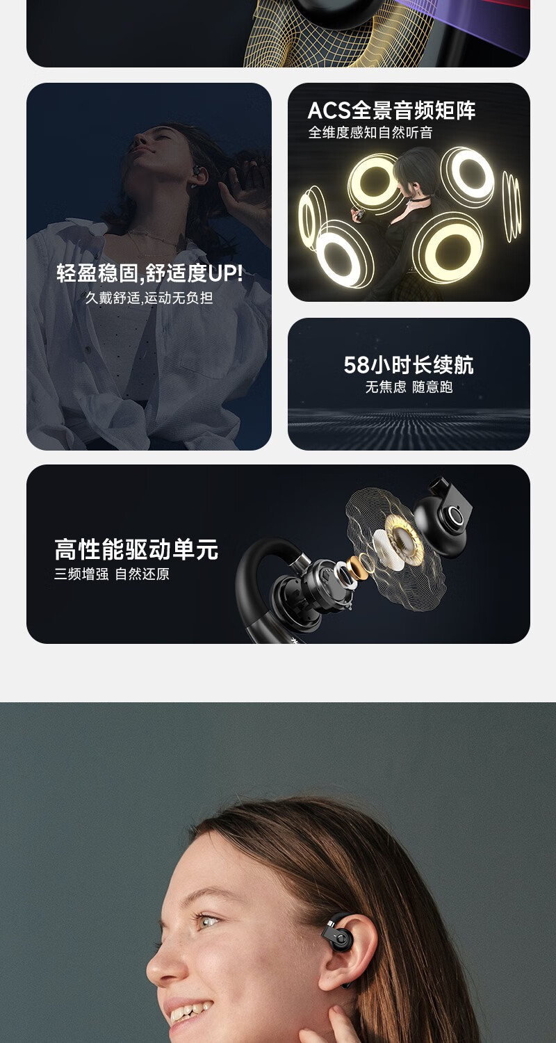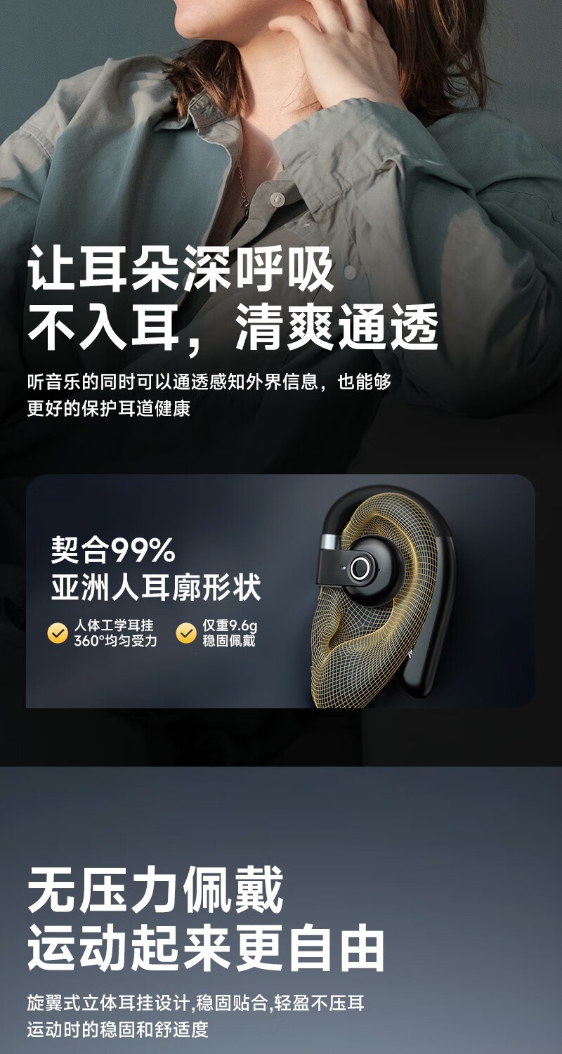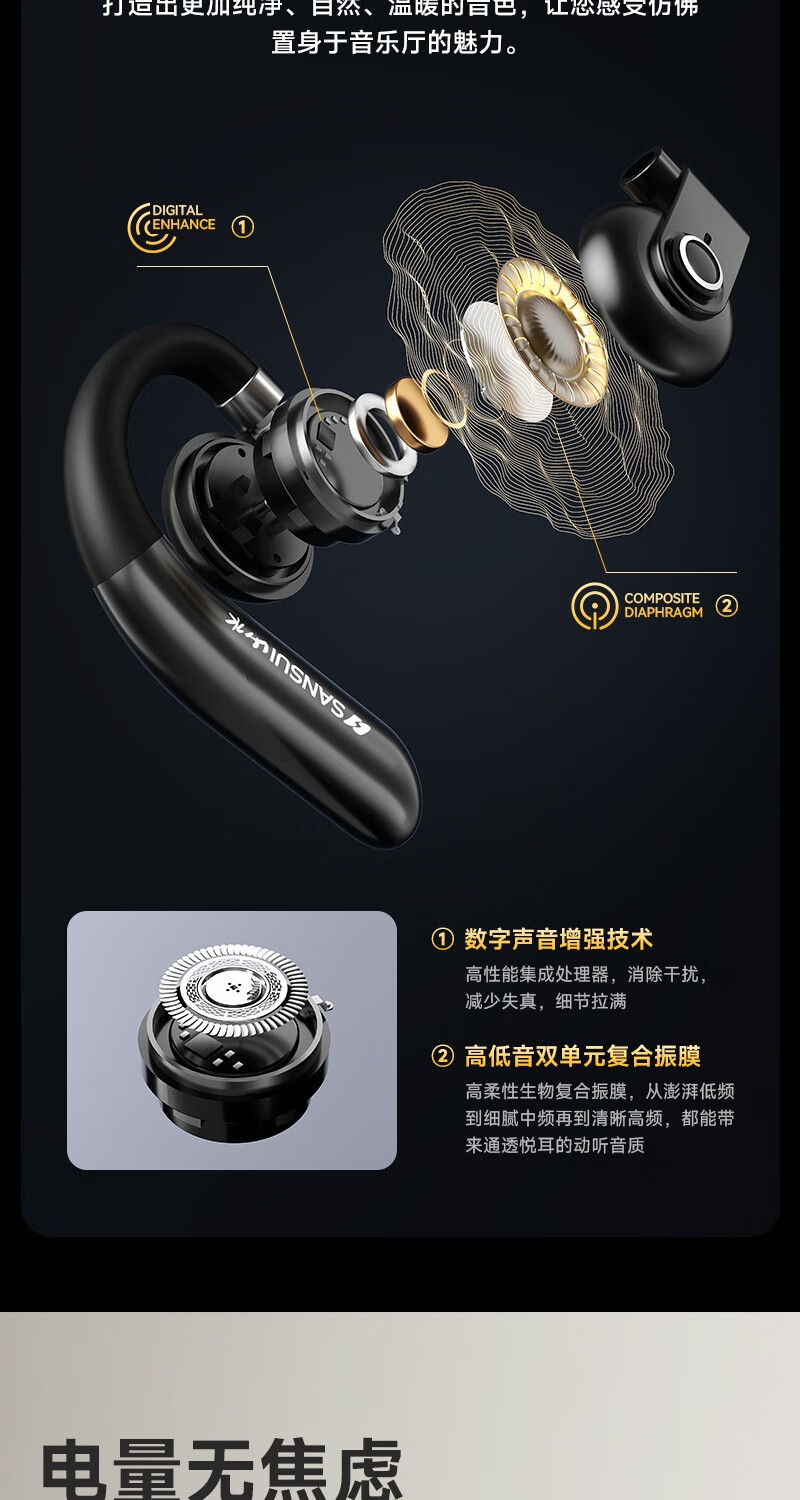 山水(SANSUI)TW88蓝牙耳机 挂耳式开放不入耳骨传导 适用苹果华为安卓 尊享版-白色