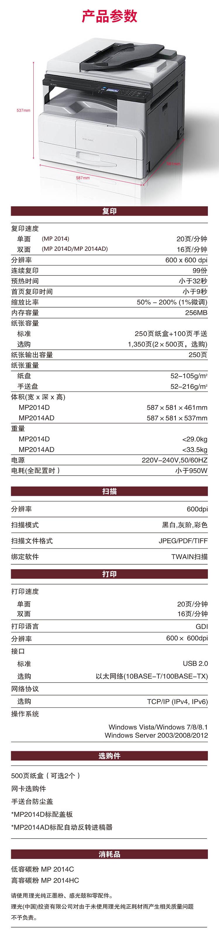 | A4复印速度(黑白) | 20 |