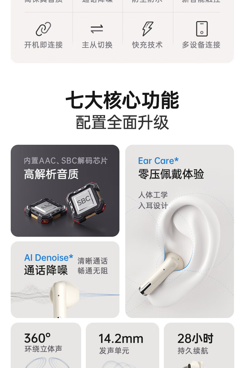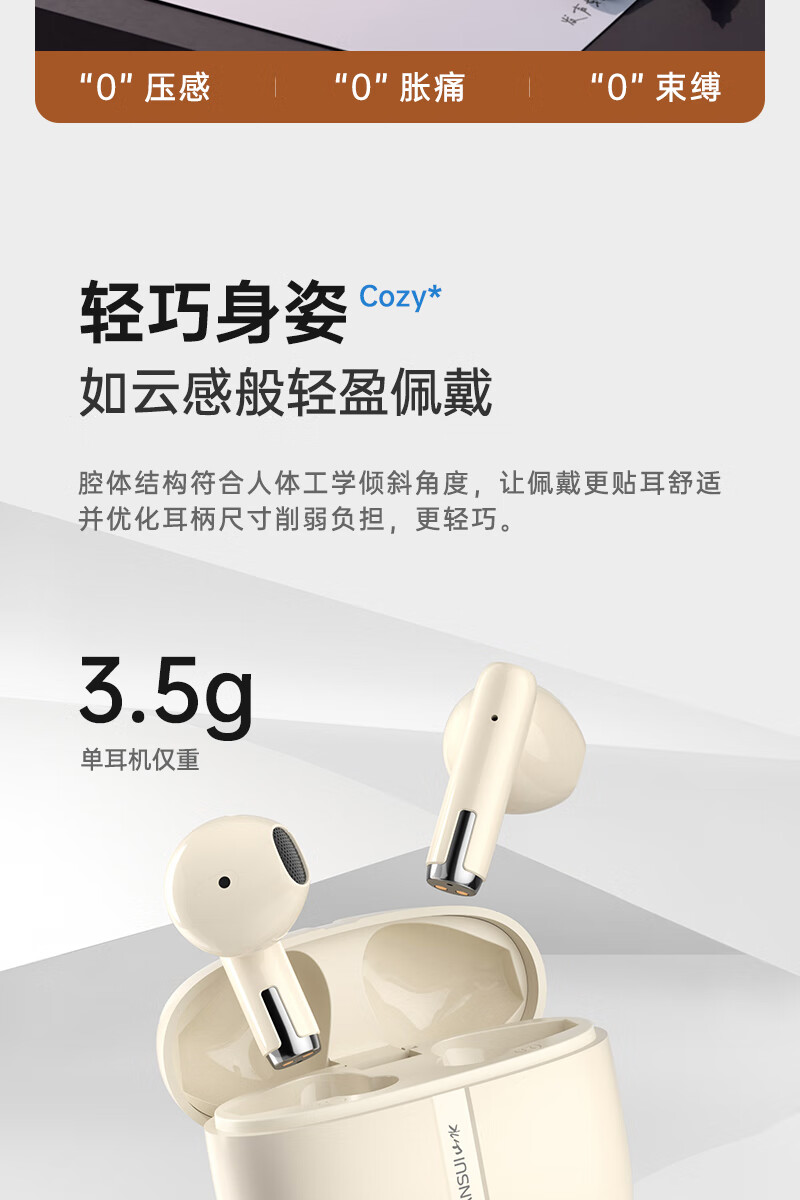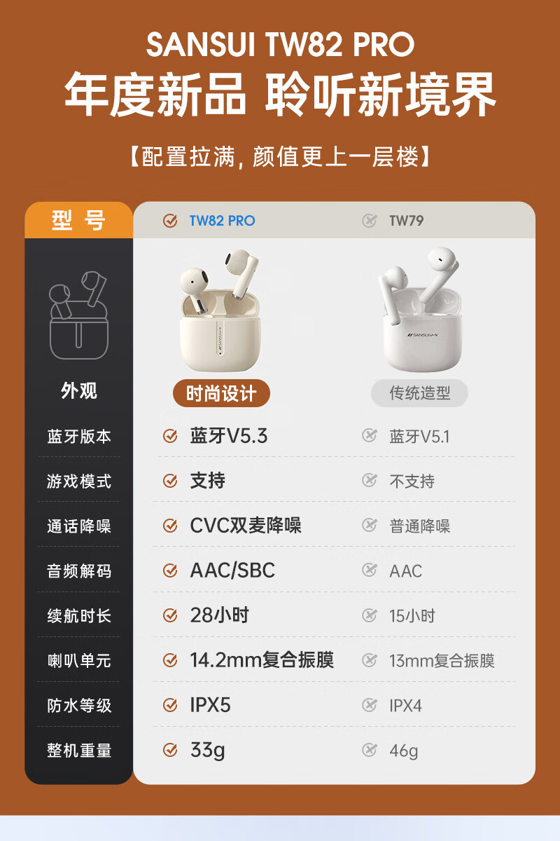 山水(SANSUI)TW82真无线蓝牙耳机 半入耳式音乐耳机 超长续航 适用苹果华为小米 云岩白